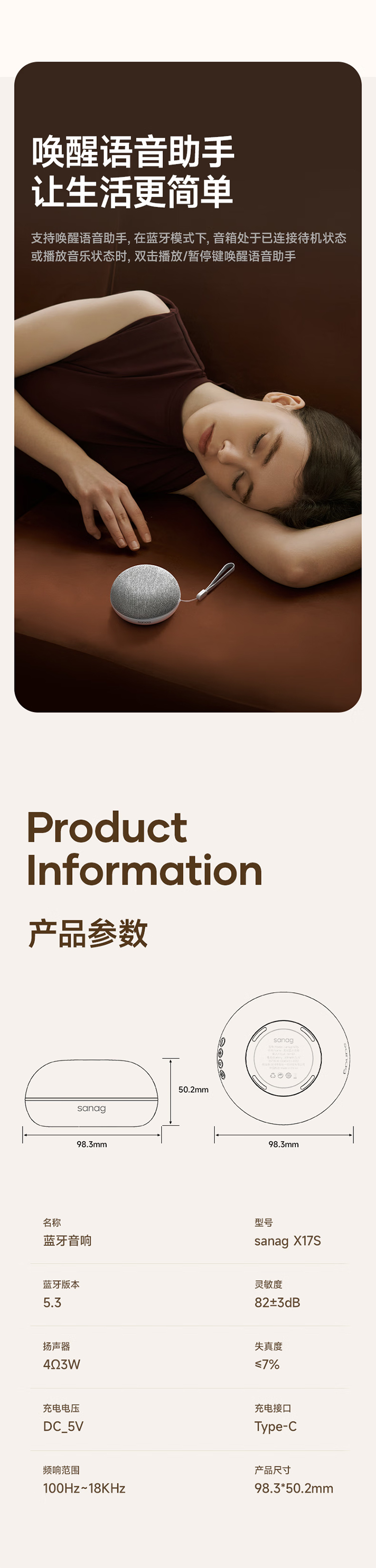 SANAG 塞那X17S 蓝牙音箱低音炮电脑音响桌面高颜值迷你小音响HIFI高音质便携生日礼物