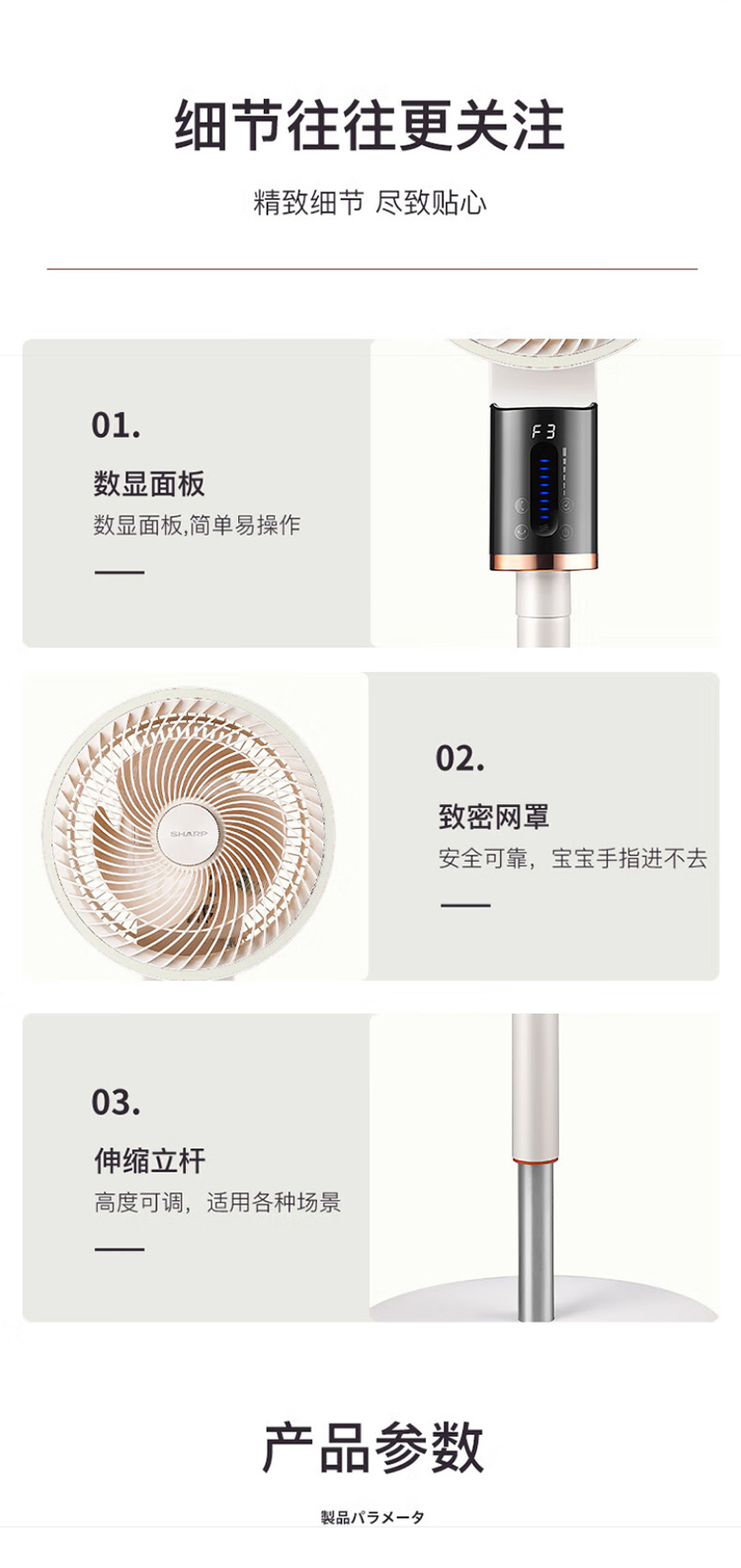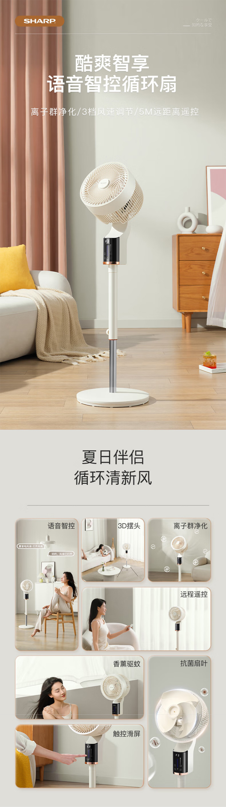 夏普3D摇头空气循环扇遥控电风扇家用摇头电扇换气扇循环对流风扇落地扇轻音节能空调伴侣 PJ-CD412A