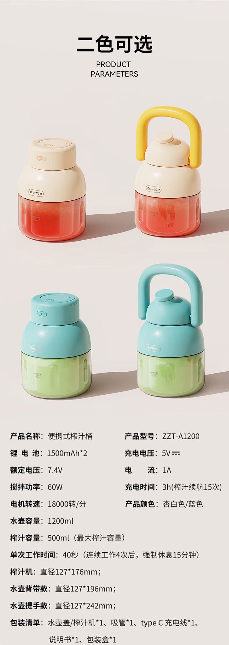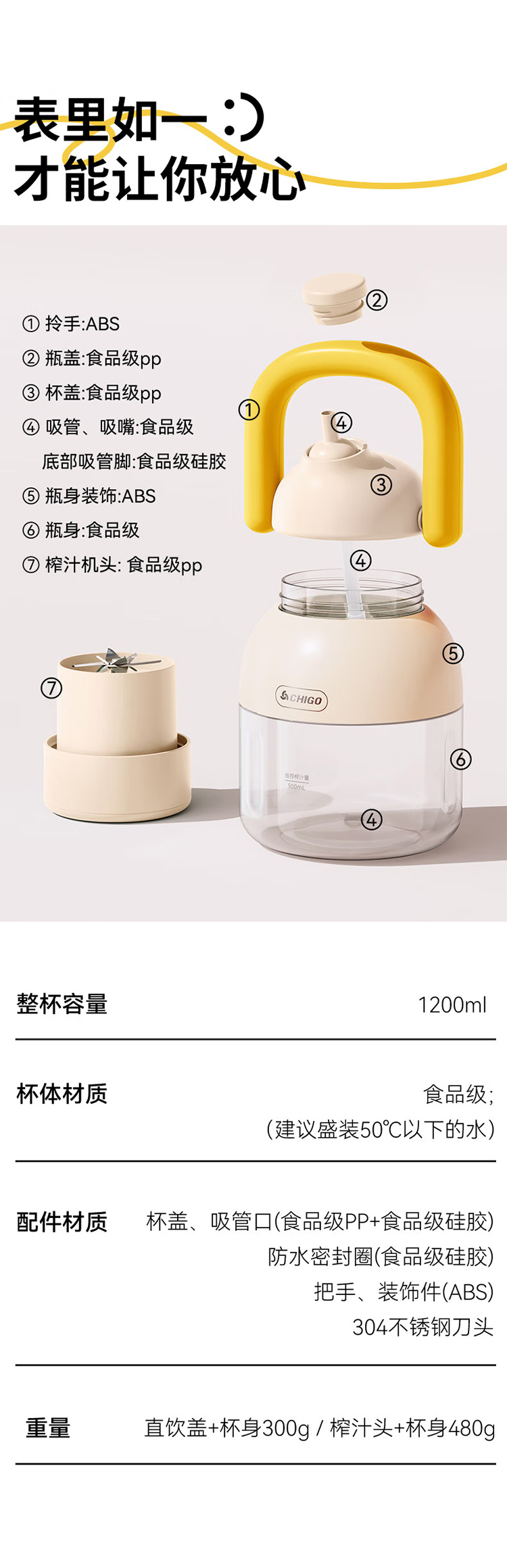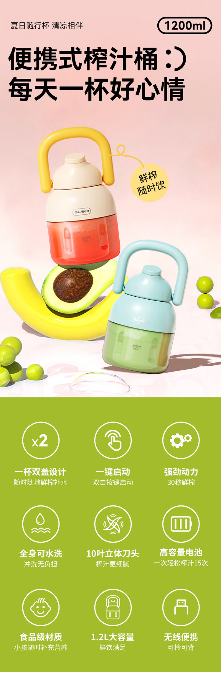 志高志高(CHIGO)榨汁杯 家用便携小型榨汁机 户外随行碎冰果汁杯 ZZT-A1200