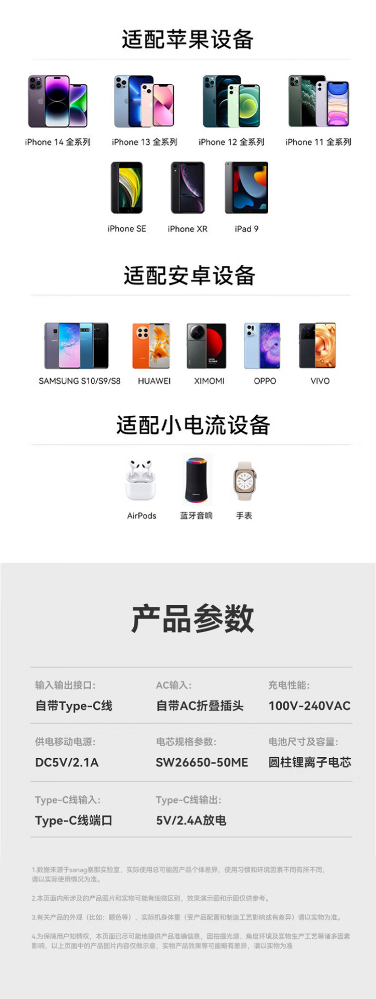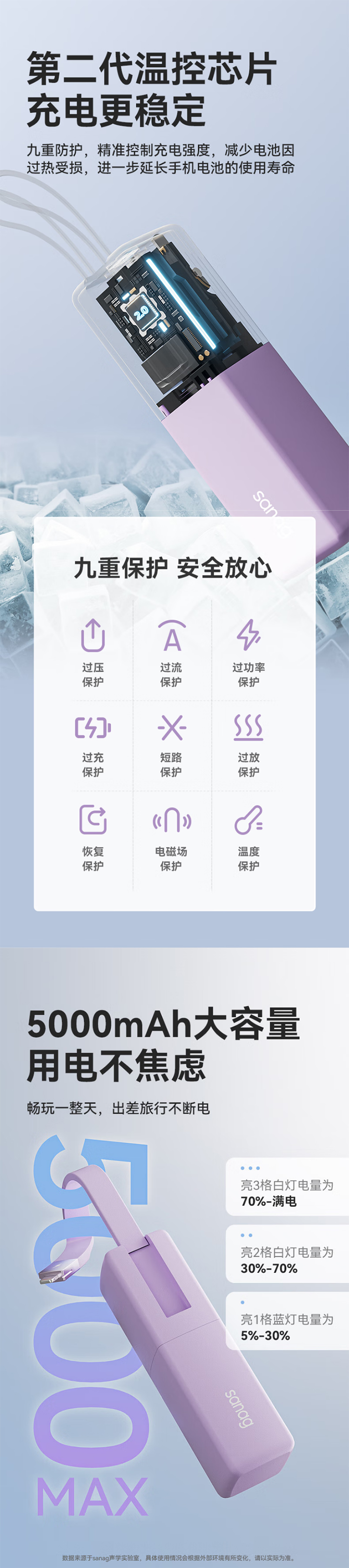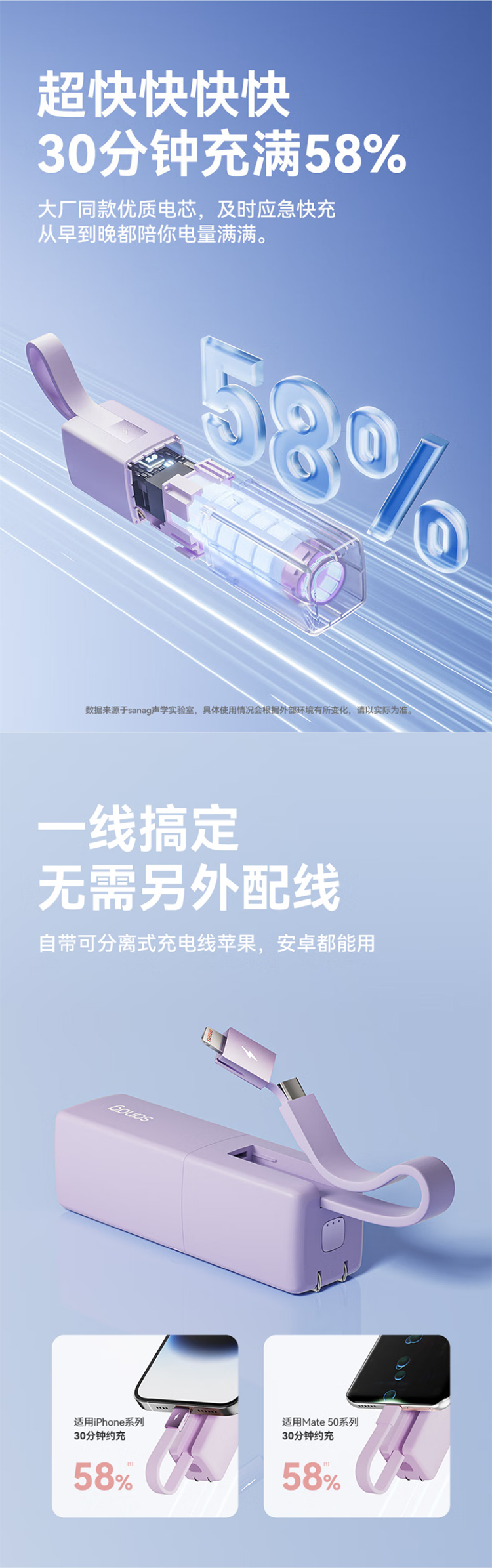 SANAG K30充电宝充电器自带线四合一能量棒苹果华为快充带插头移动电源大容量迷你小巧可上飞机1