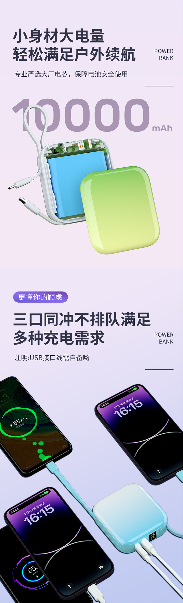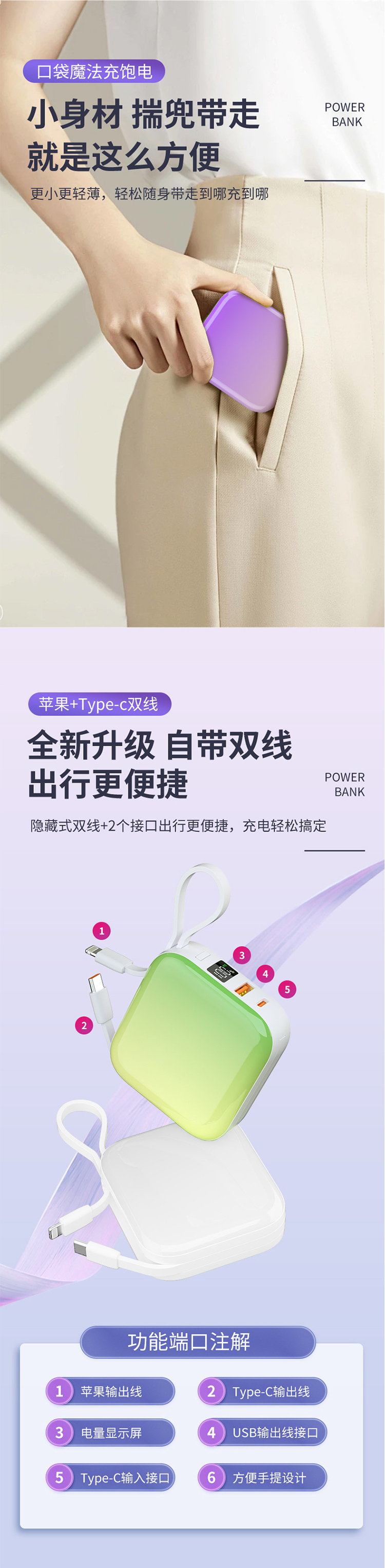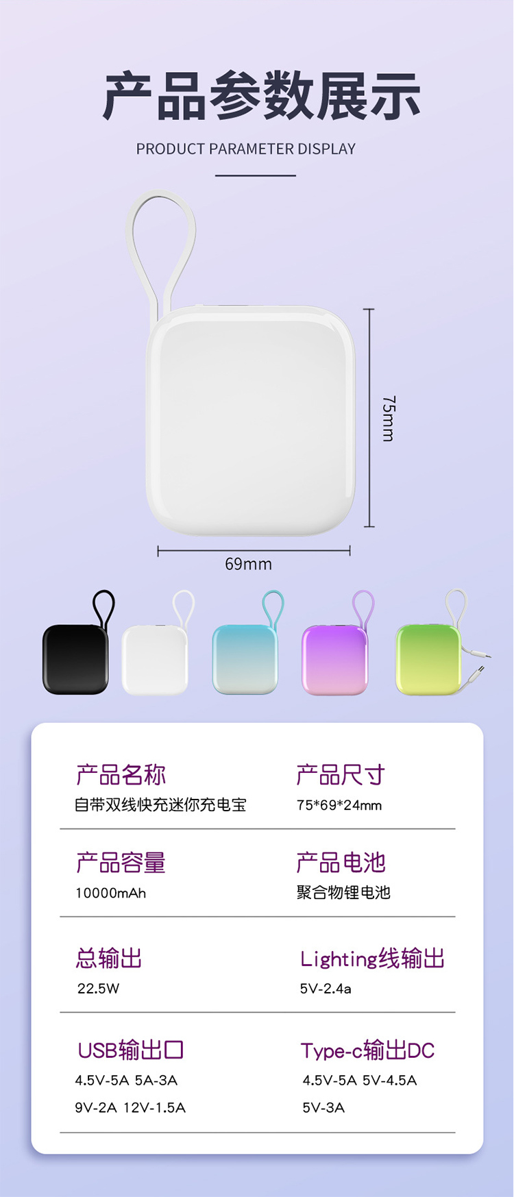 22.5w充电宝10000毫安20W快充PD大容量便携迷你自带线移动电源礼1