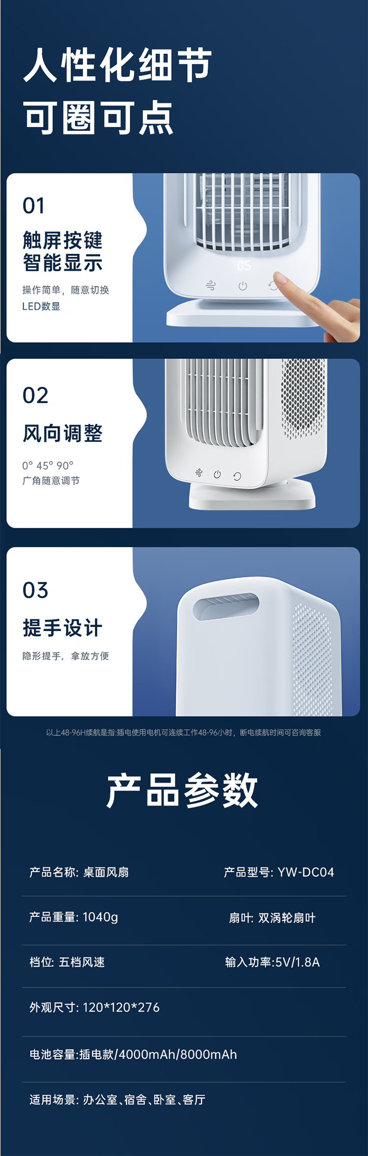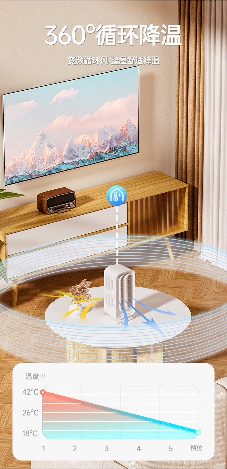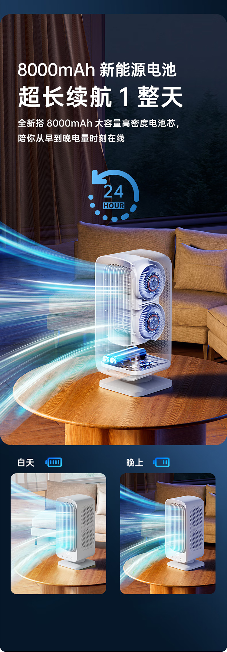VENIDER【静音桌面扇】桌面电风扇空调扇制冷小风炮塔扇静音USB风扇台式便携充电办公宿舍摇头8000mAh