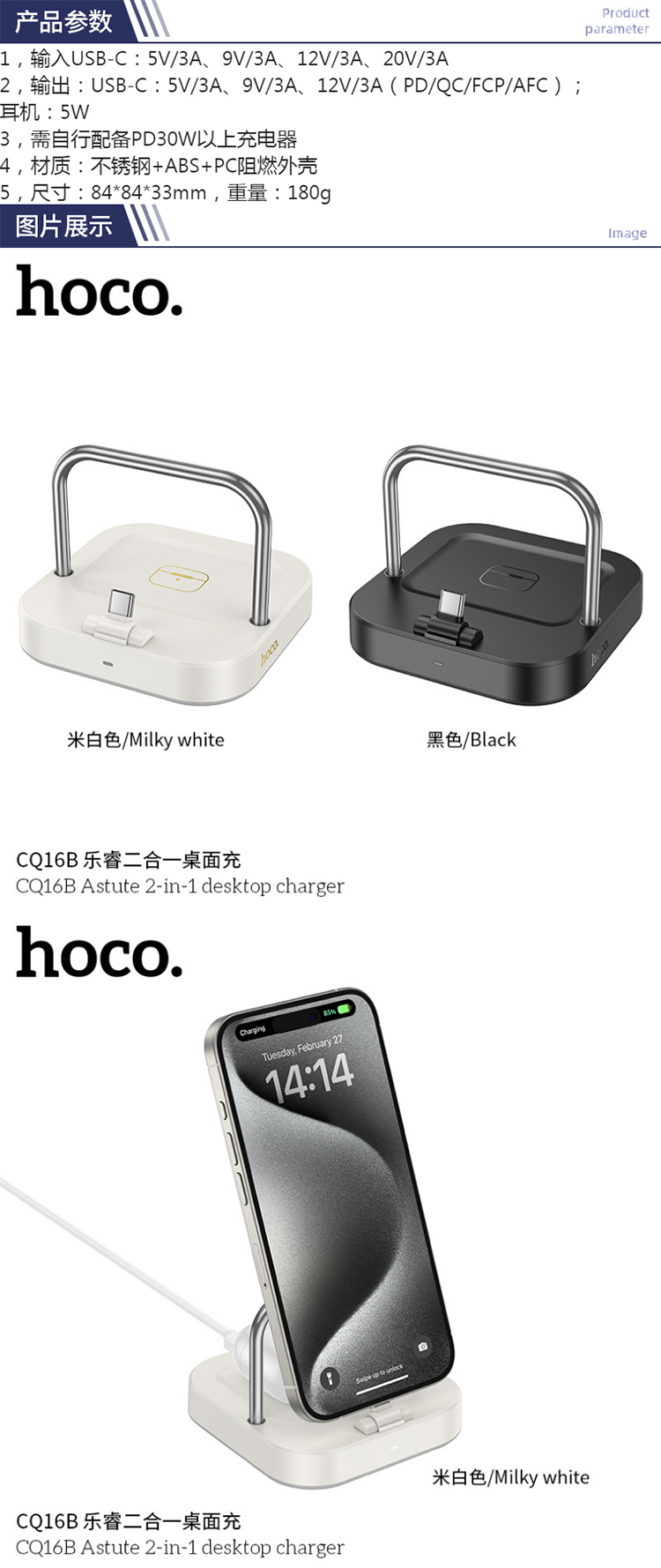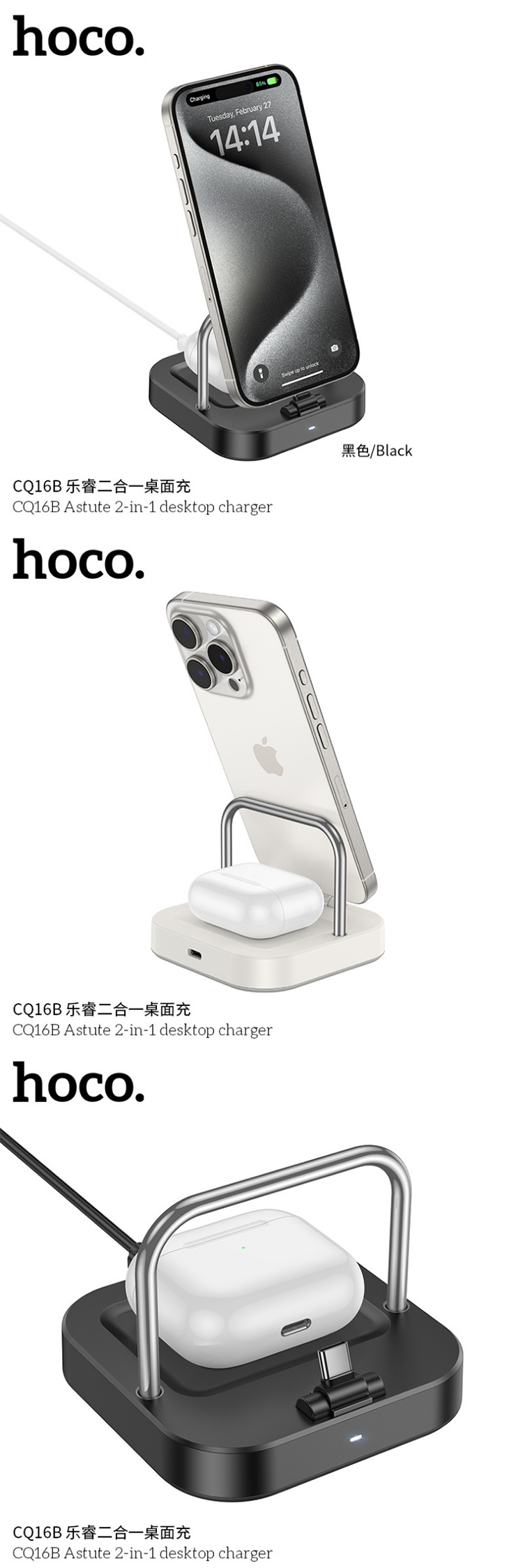 HOCO浩酷 CQ16B 乐睿二合一桌面充适用于耳机充电1