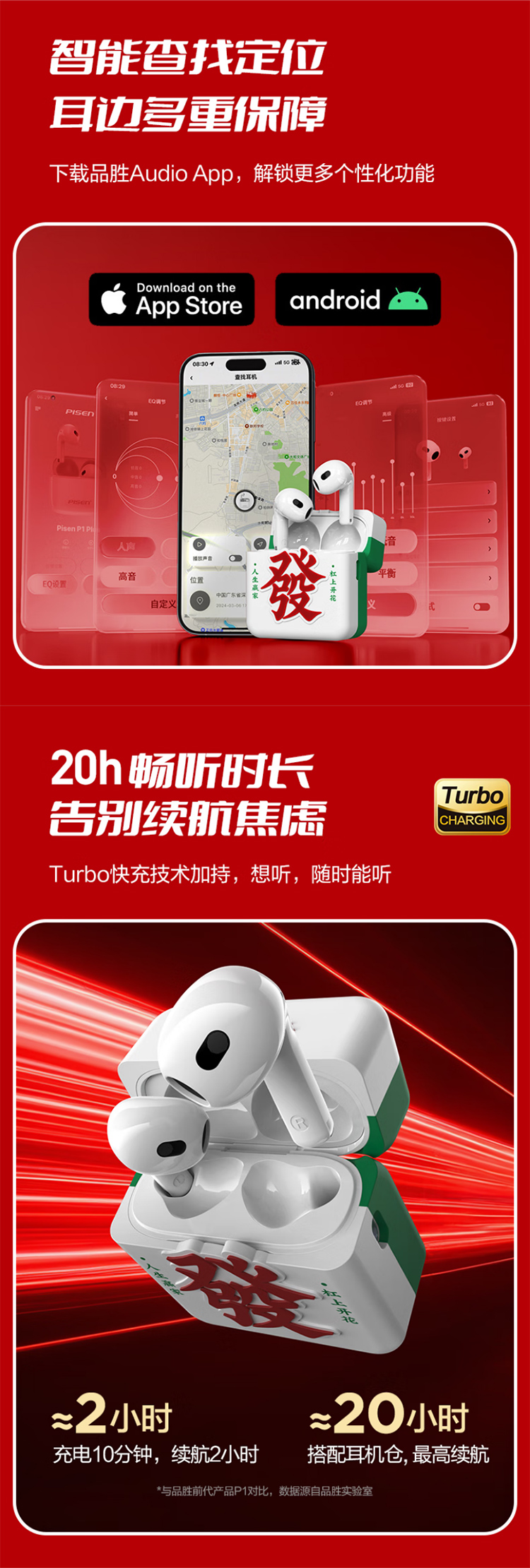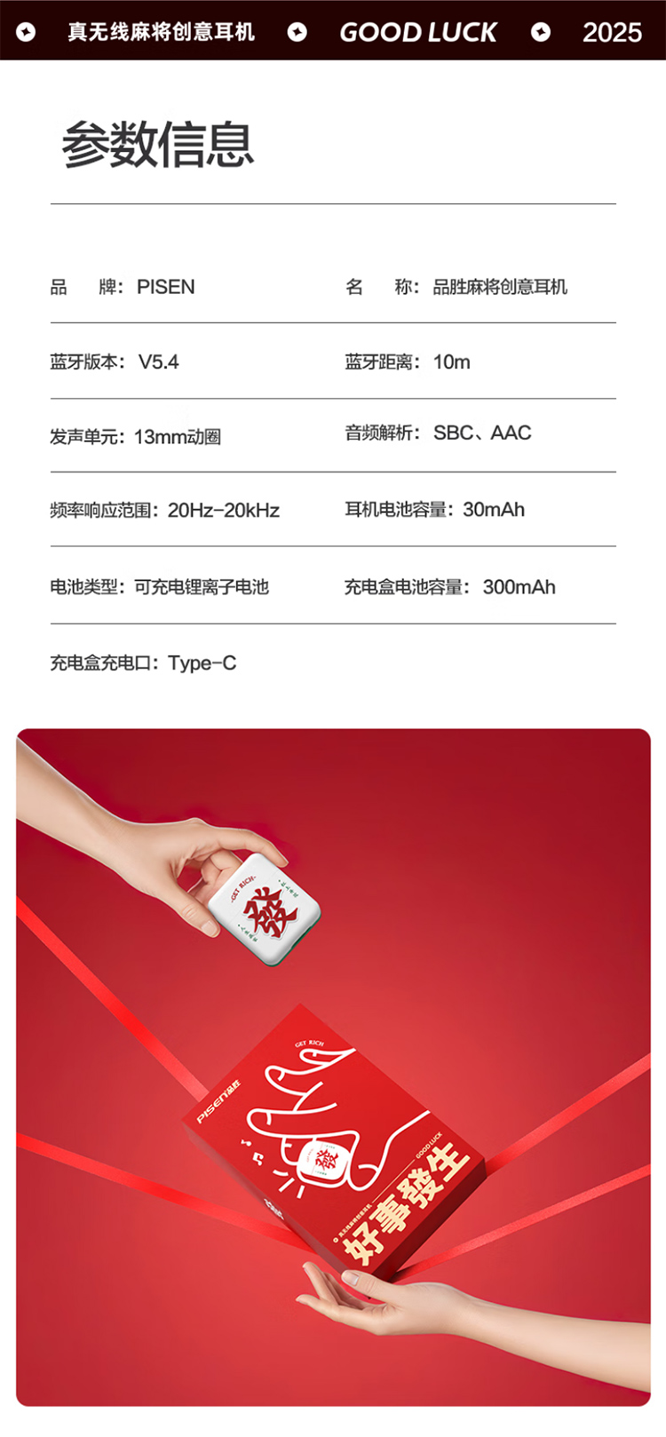 品胜真无线蓝牙耳机(麻将限定版)创意耳机