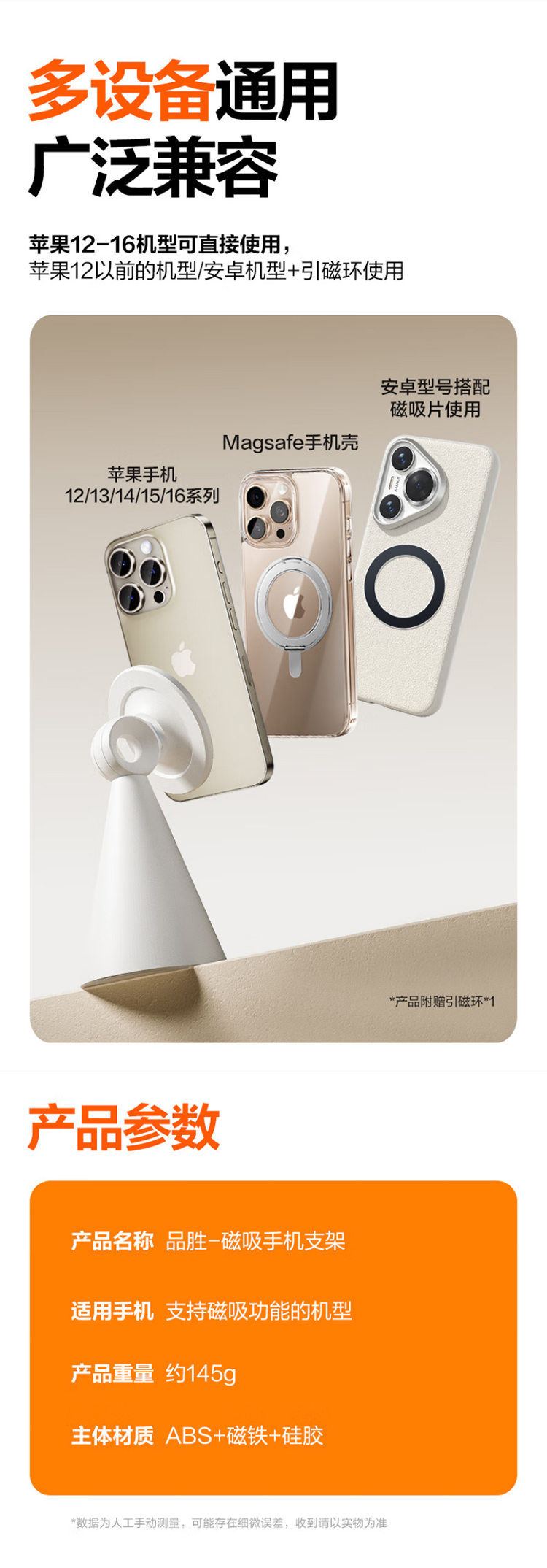 品胜磁吸支架 Magsafe手机支架可旋转桌面便捷直播