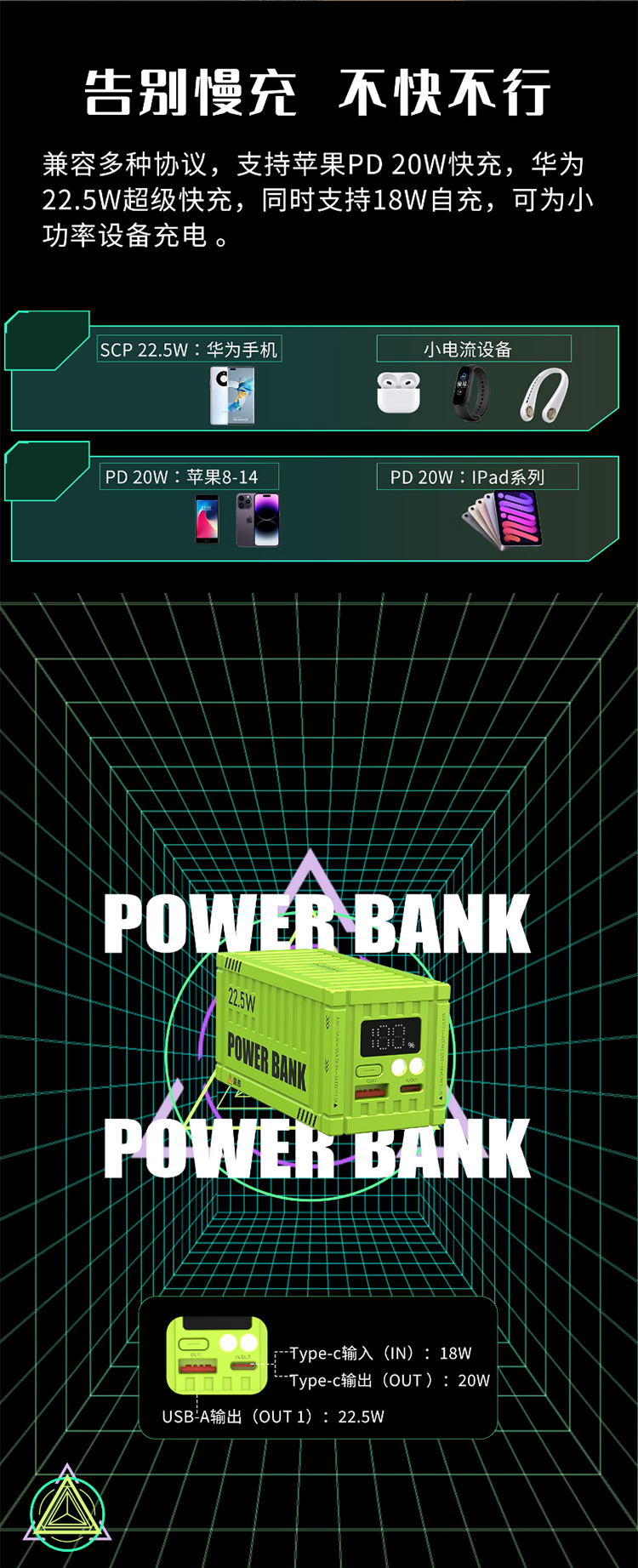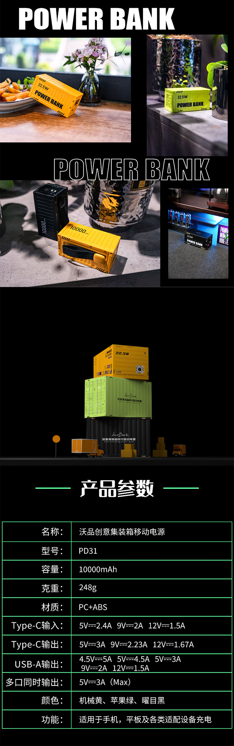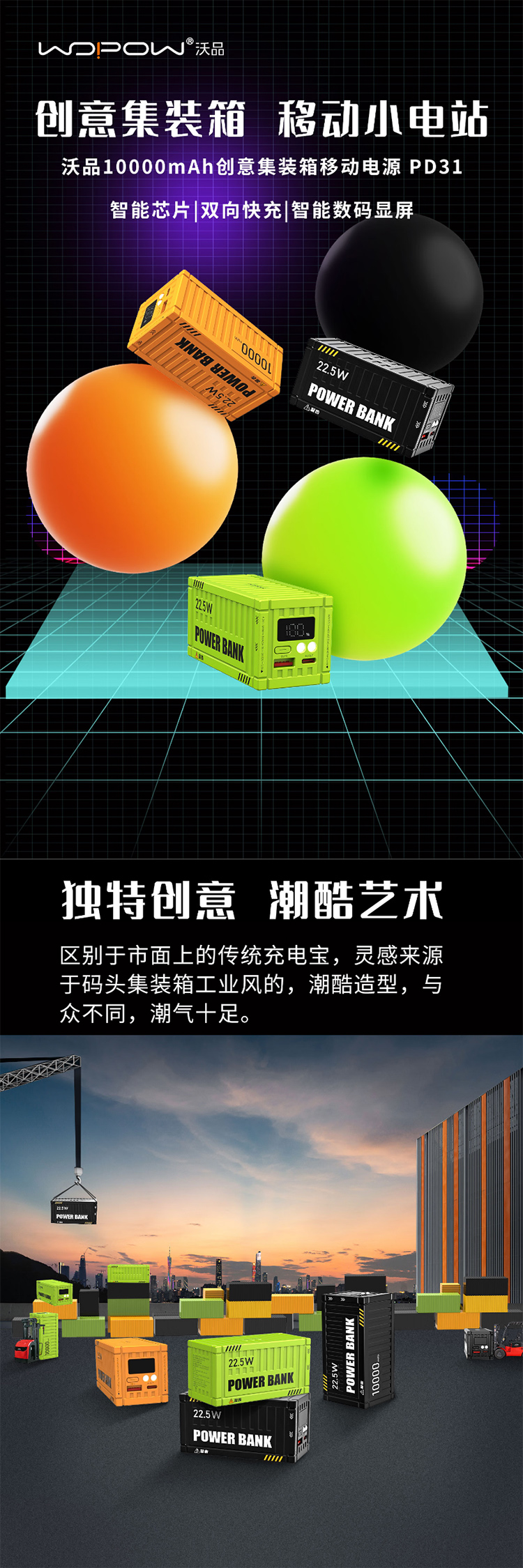 WIOPOW 沃品 集装箱充电宝1万毫安22.5W快充小巧便携适用于苹果华为小米安卓