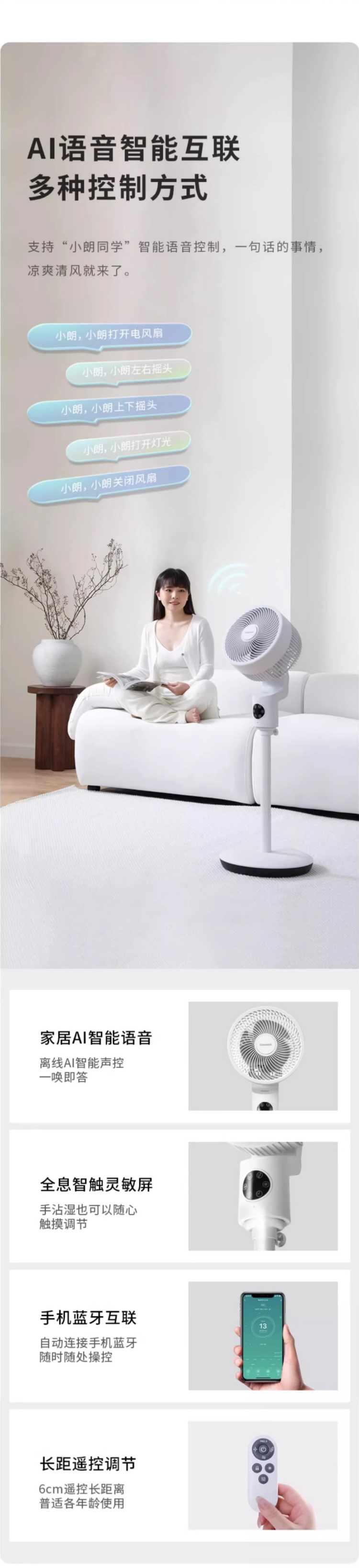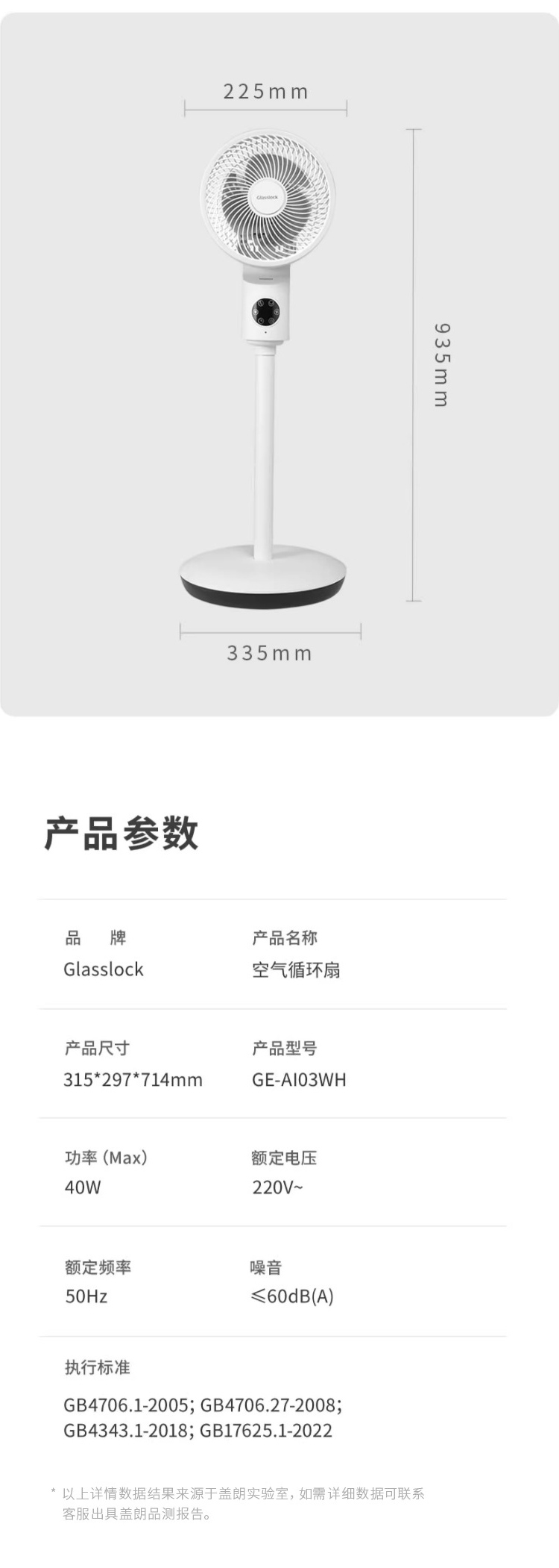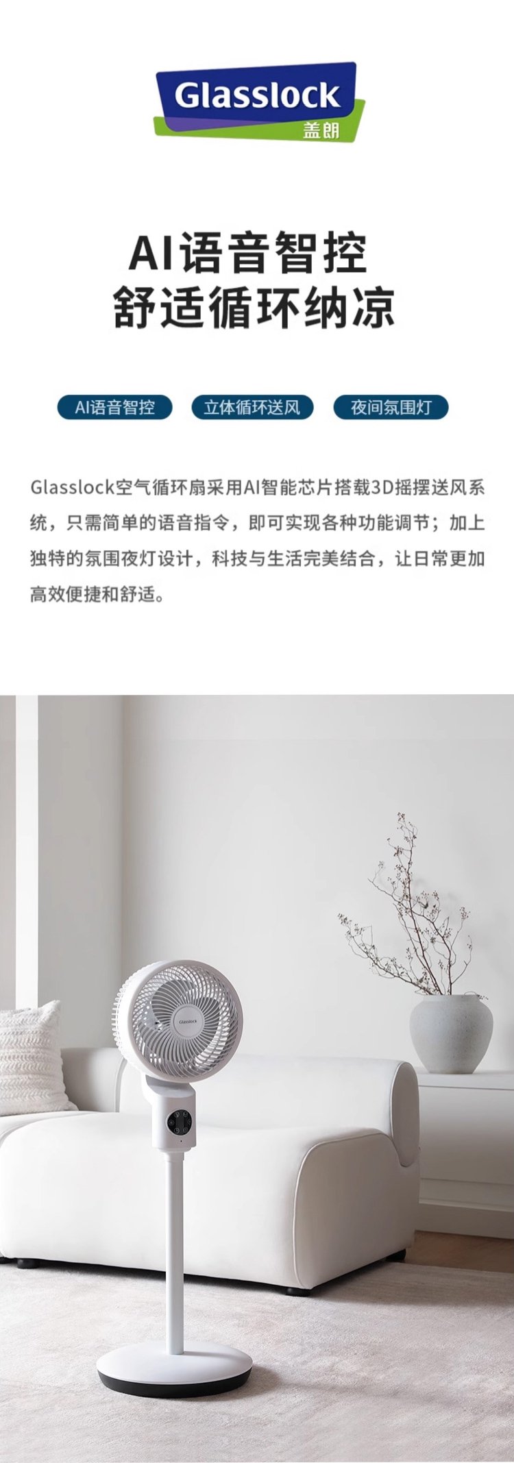 Glasslock盖朗空气循环扇家用落地扇立式语音摇头定时静音电风扇1