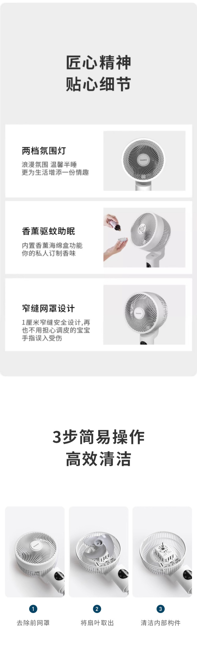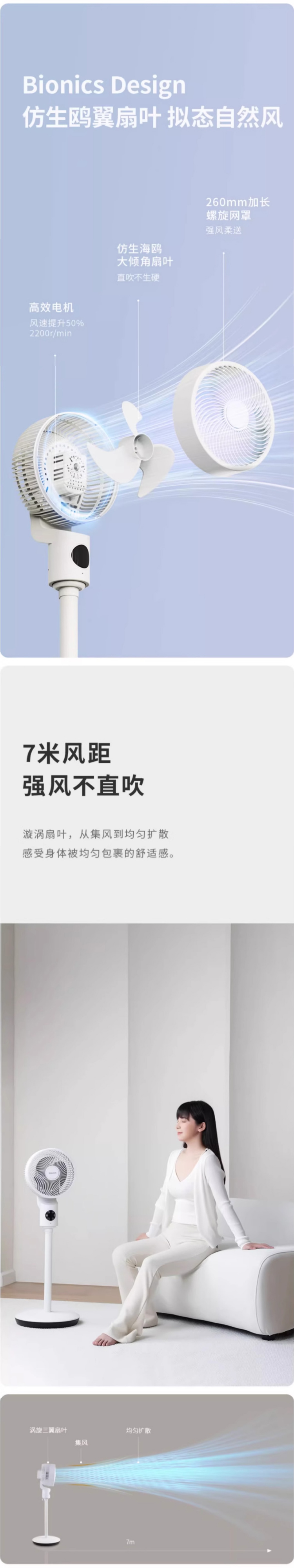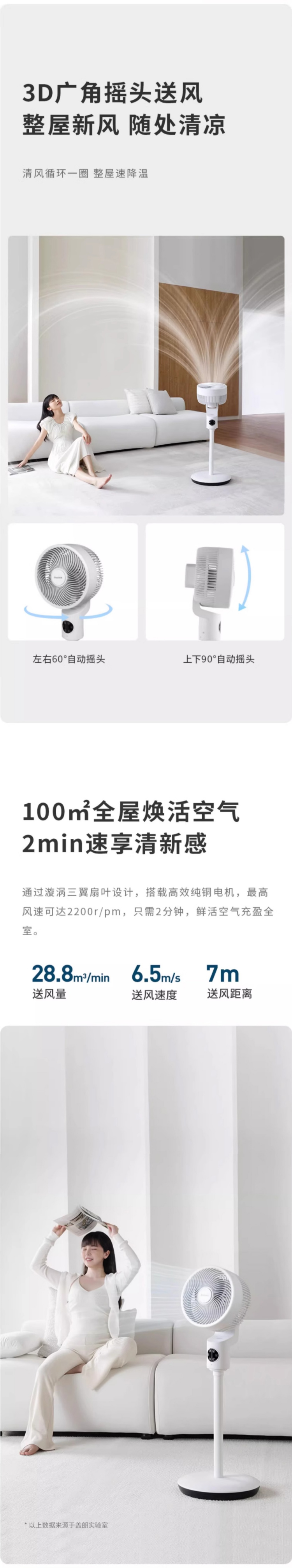 Glasslock盖朗空气循环扇家用落地扇立式语音摇头定时静音电风扇1