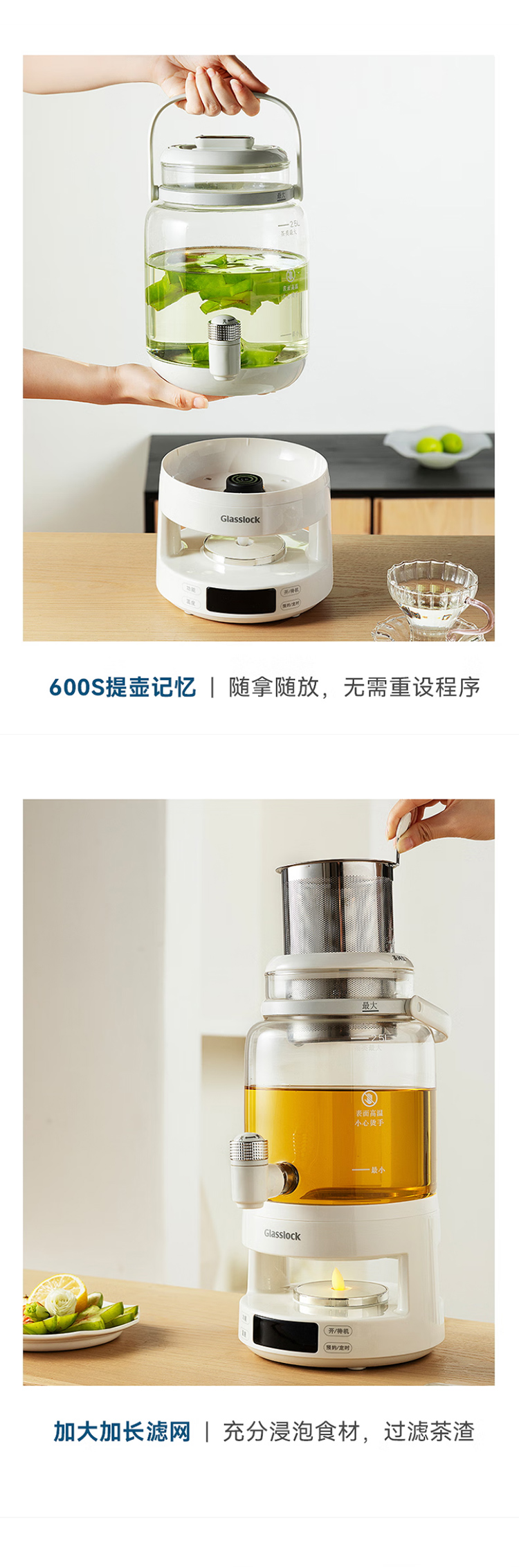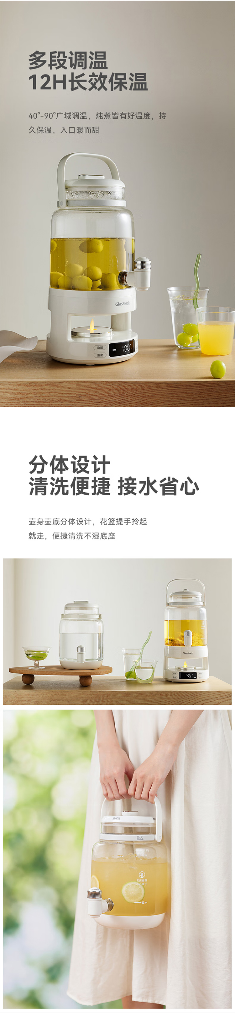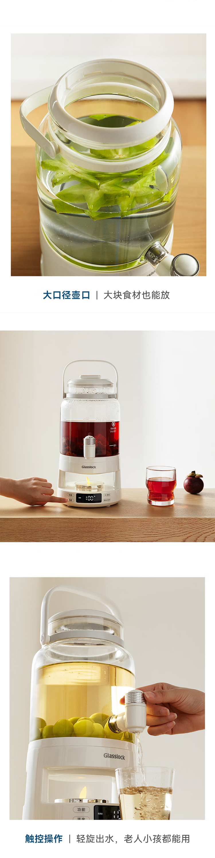 GLASSLOCK花茶电热水瓶养生壶2.8L带水龙头恒温玻璃自制饮料煮果茶泡酒桶烧水壶定时预约家用办公室用饮水机