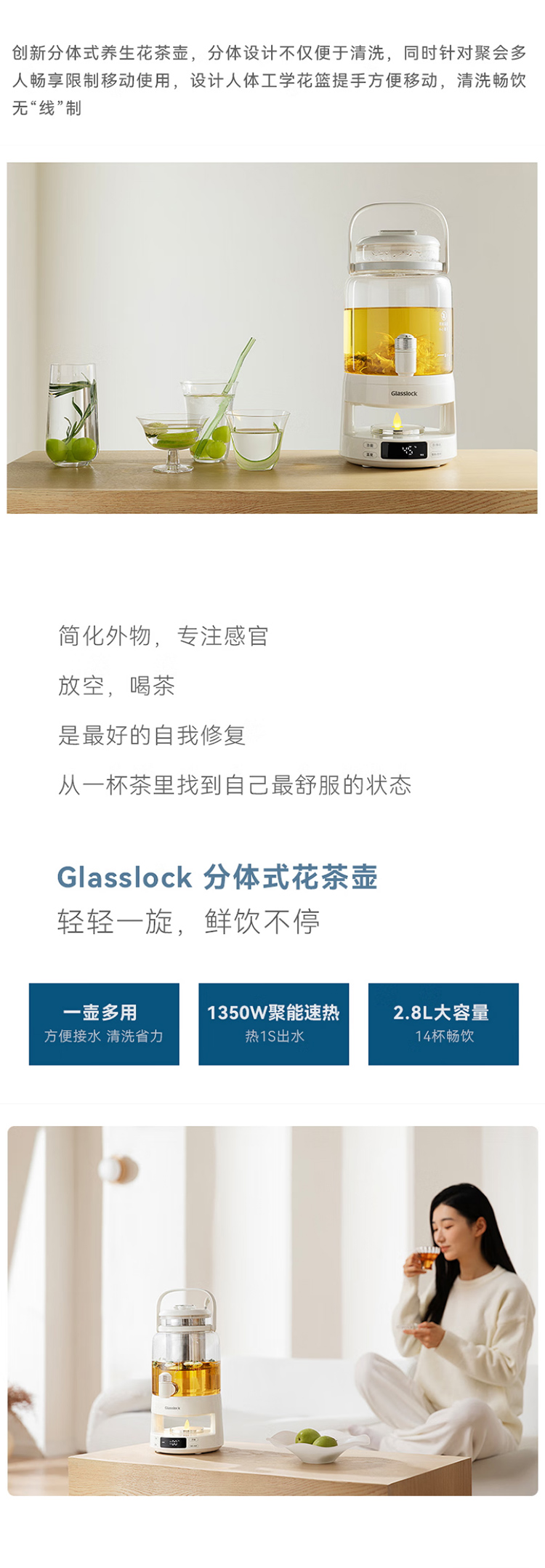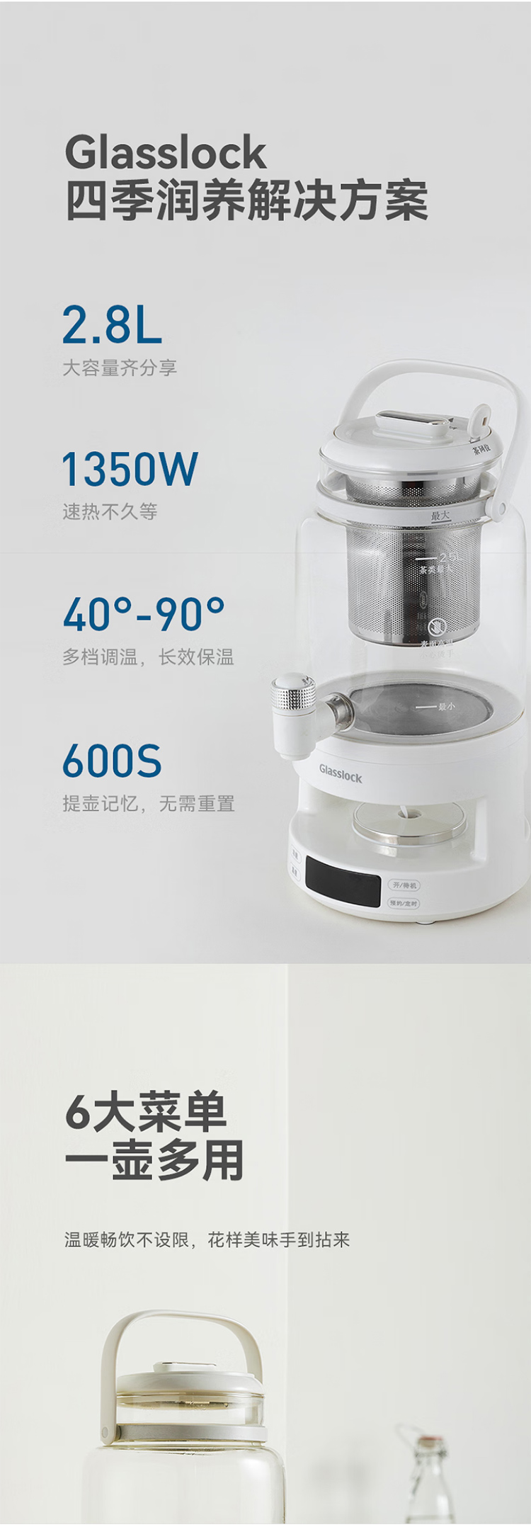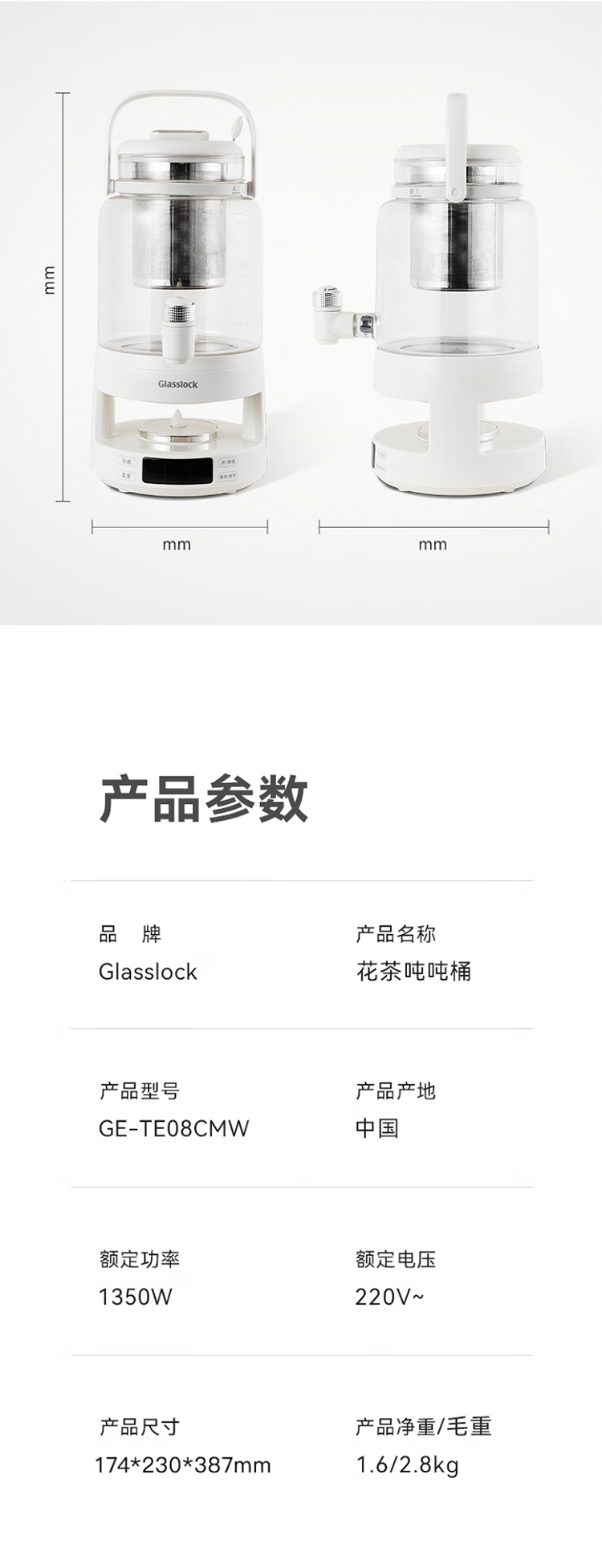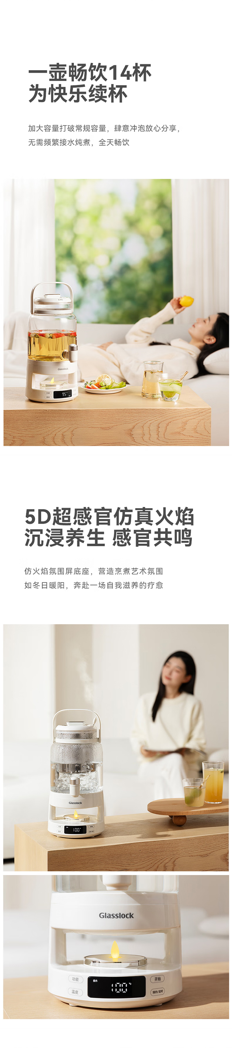 GLASSLOCK花茶电热水瓶养生壶2.8L带水龙头恒温玻璃自制饮料煮果茶泡酒桶烧水壶定时预约家用办公室用饮水机