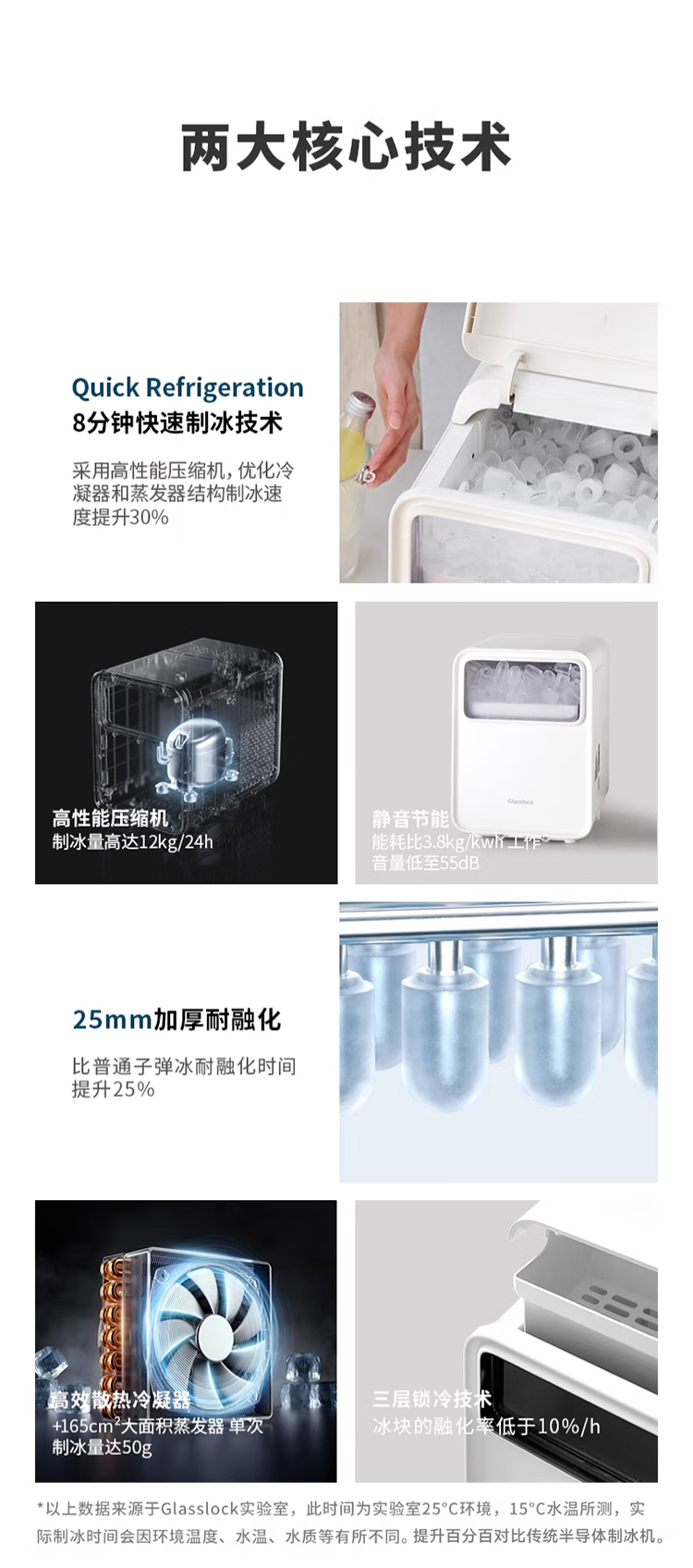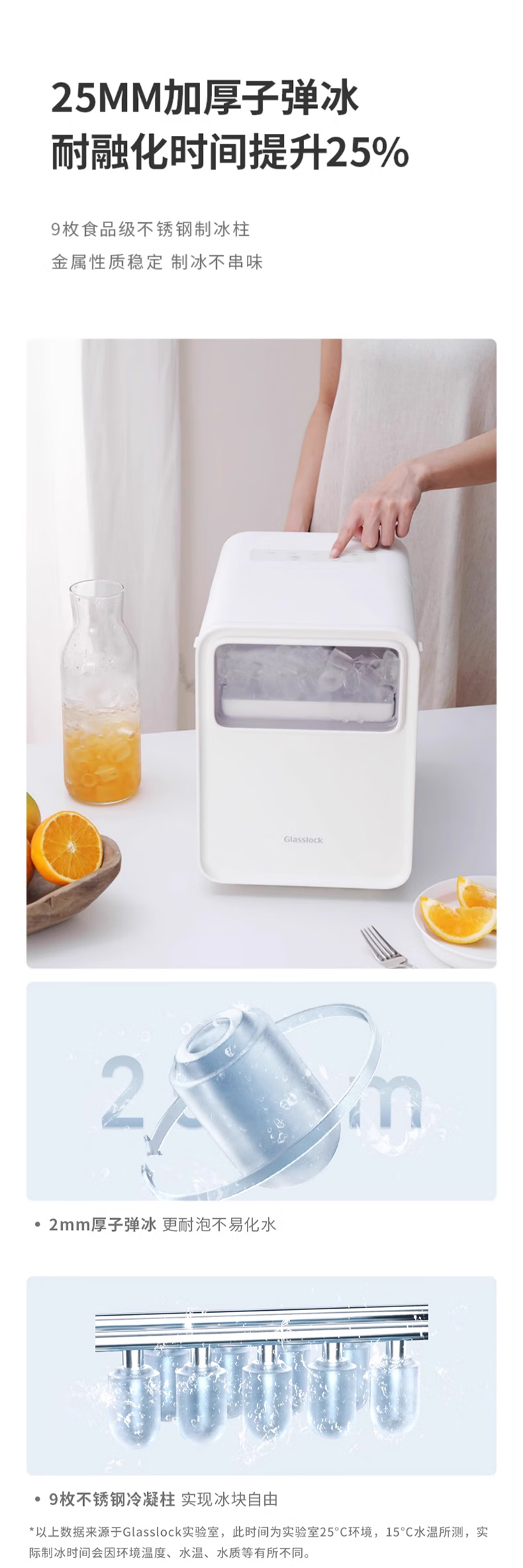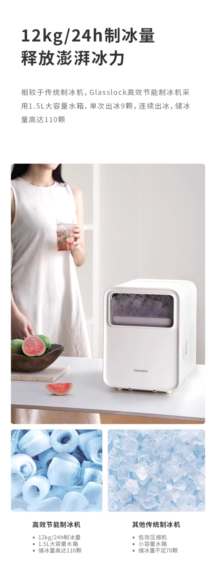 GLASSLOCK盖朗制冰机小型家用宿舍迷你mini全自动智能子弹冰块制造机 全自动制冰机1