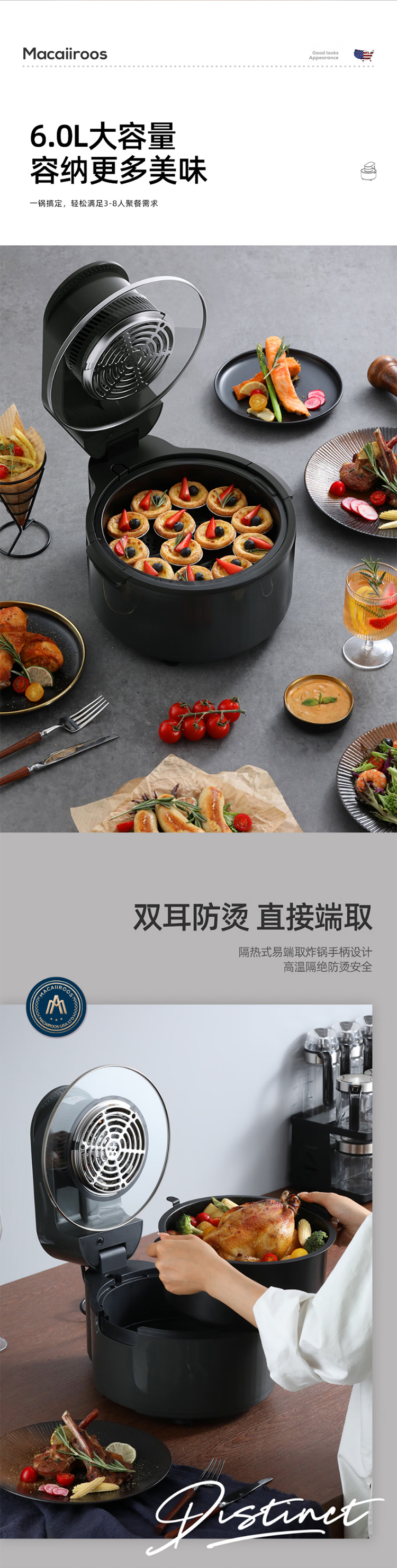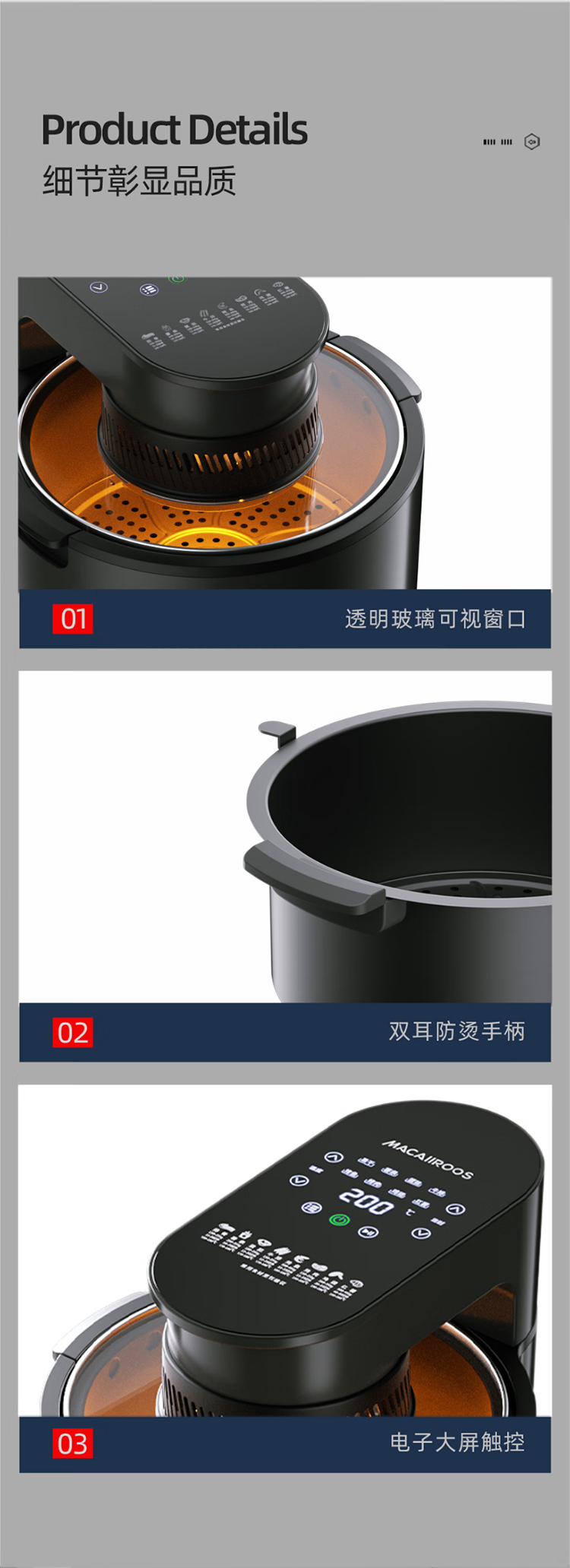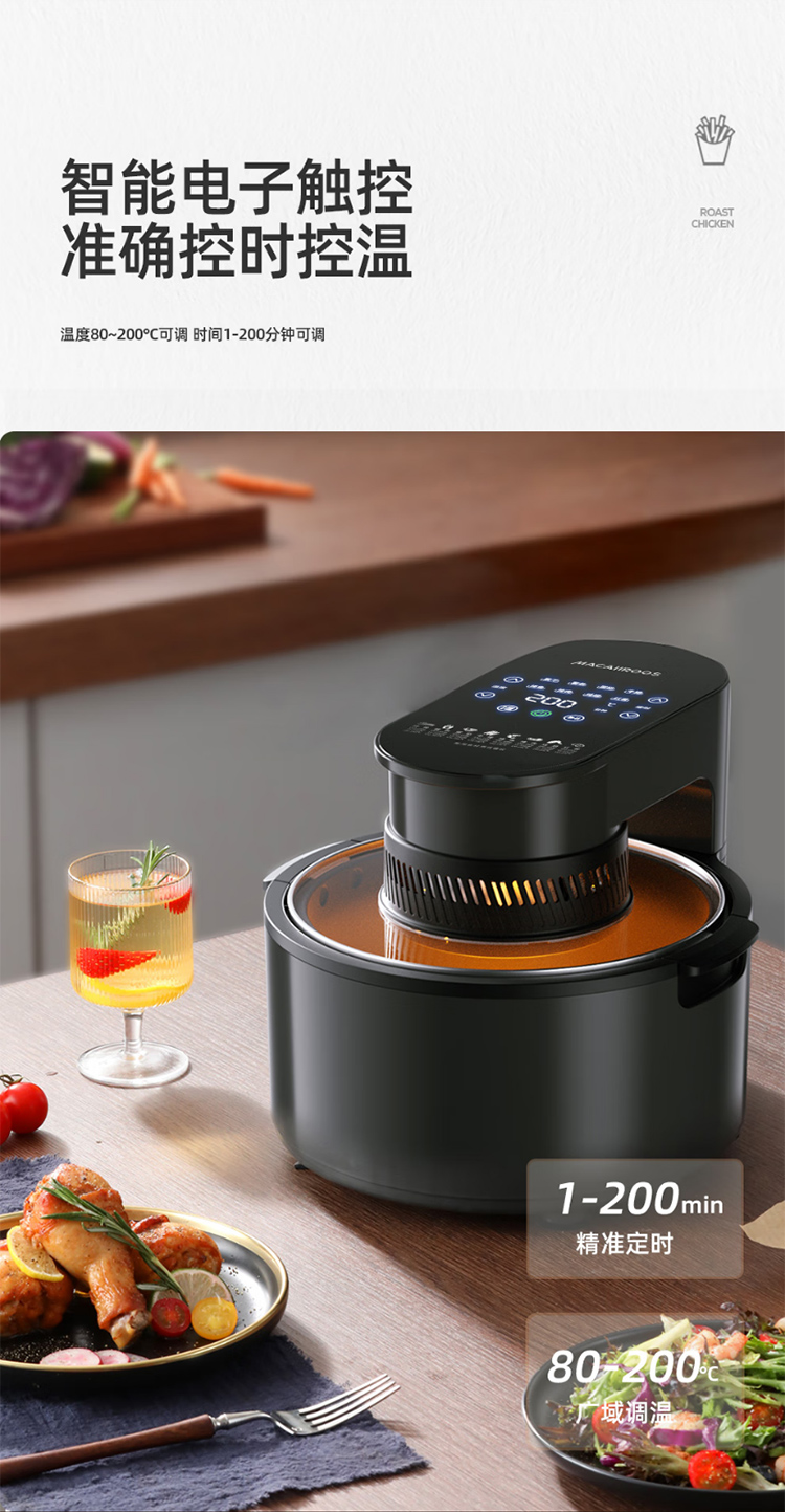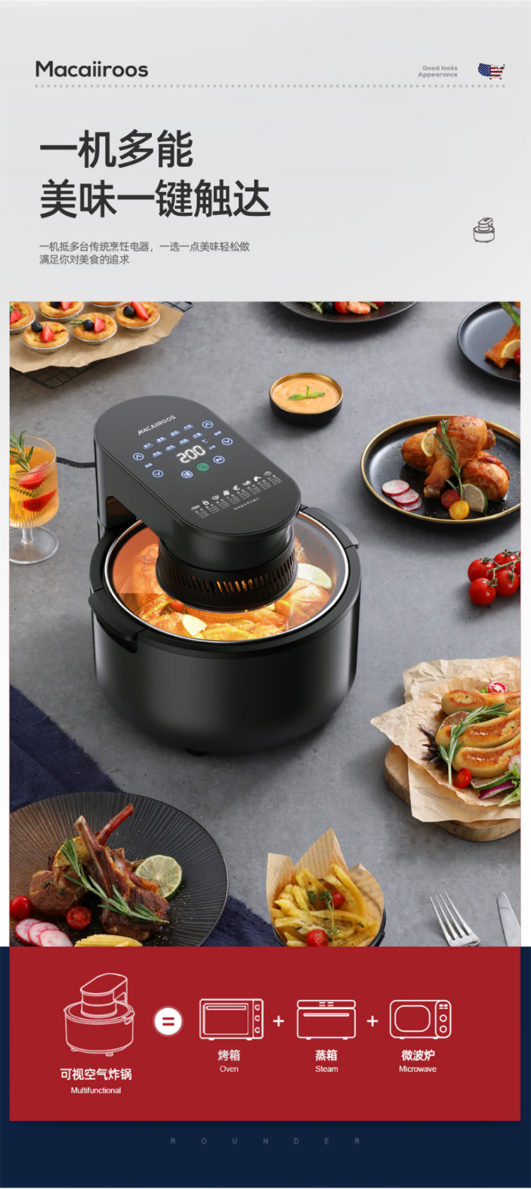 迈卡罗 (MACAIIROOS)家用多功能空气炸锅可视窗口 蒸汽嫩烤5.0L大容量 烘焙电烤箱炸锅 MC-KL55