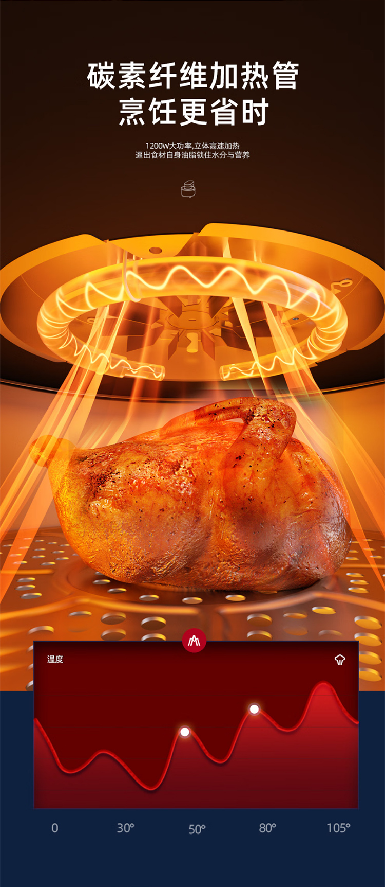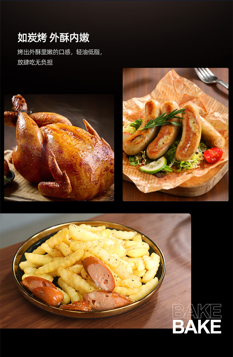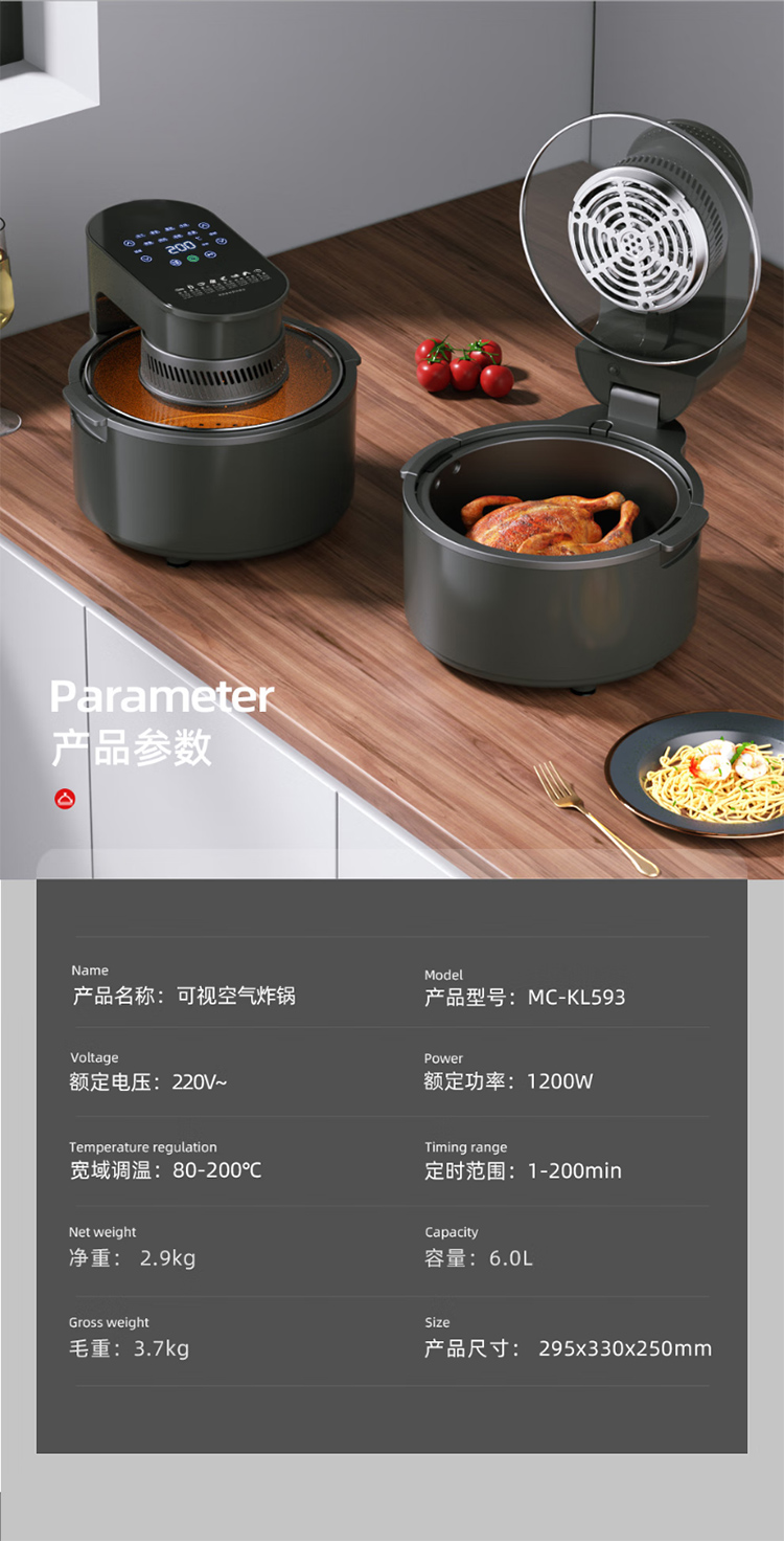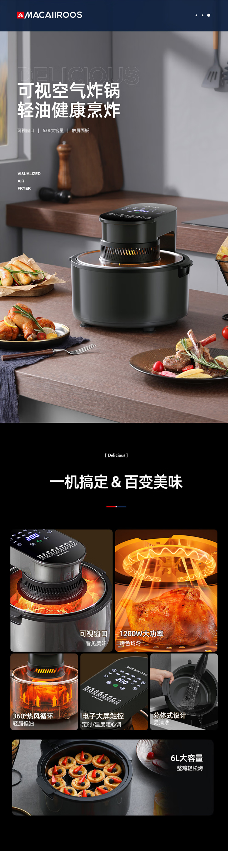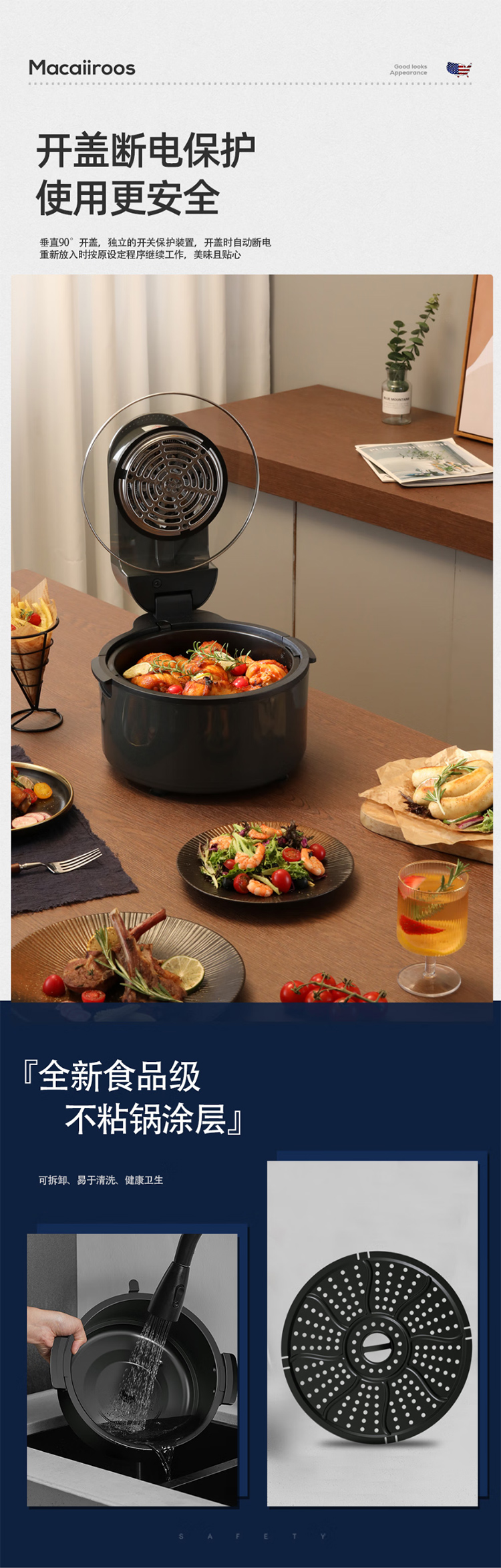 迈卡罗 (MACAIIROOS)家用多功能空气炸锅可视窗口 蒸汽嫩烤5.0L大容量 烘焙电烤箱炸锅 MC-KL55
