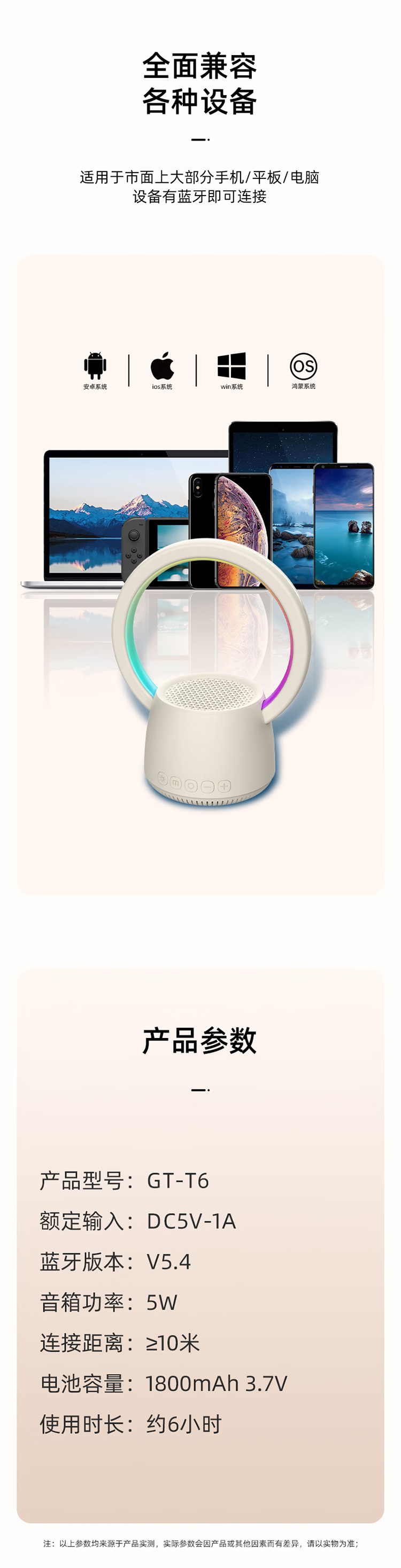 极时代悦动炫彩 K歌蓝牙音箱 好看又好听 HIFI音质 多彩灯效、灵动视觉盛宴 GT-T6