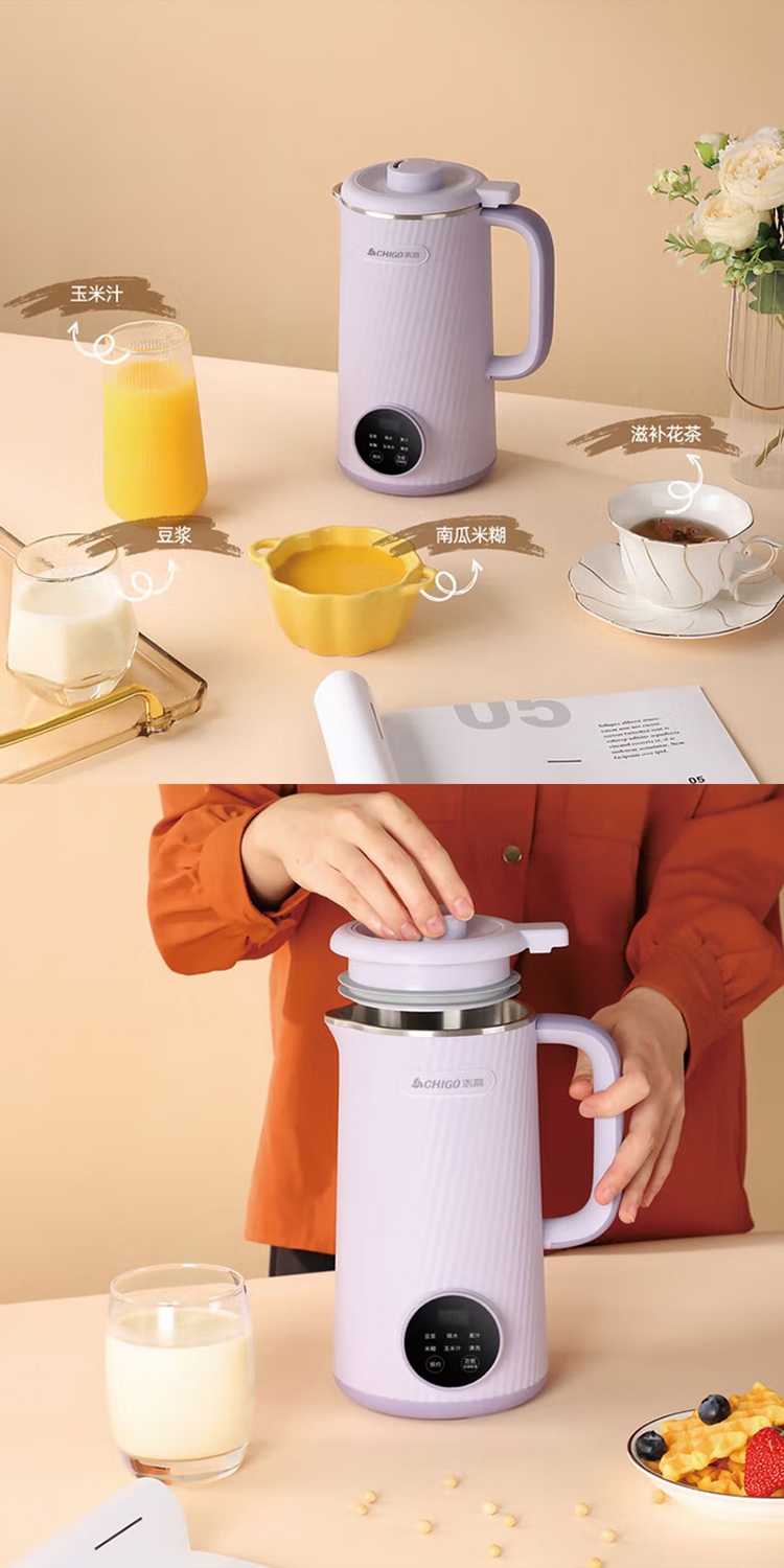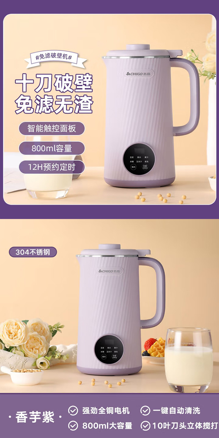 志高(CHIGO) 破壁机家用轻音豆浆机榨果汁机婴儿辅食米糊搅拌机非静音全自动多功能加热料理机 紫色【一键清洗】8