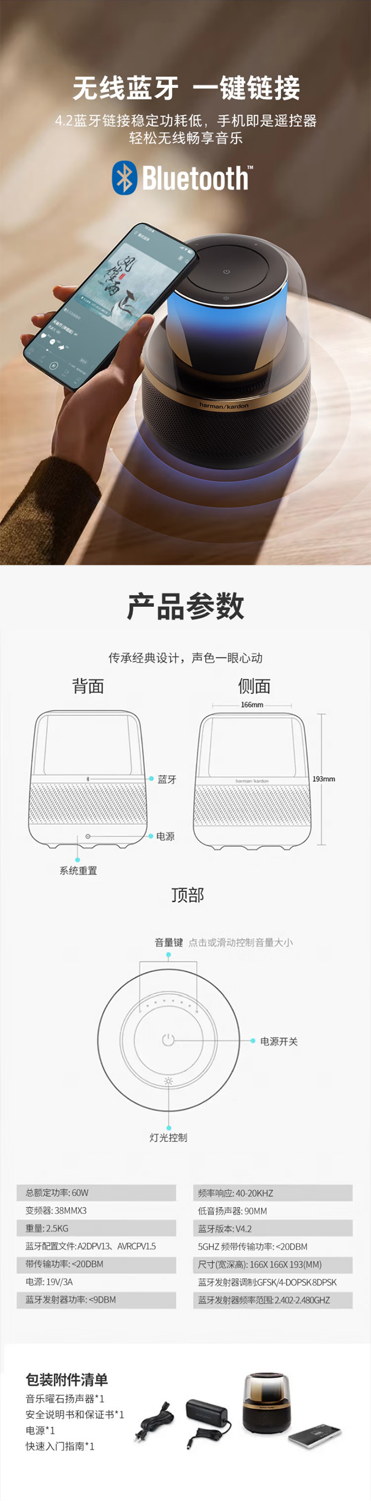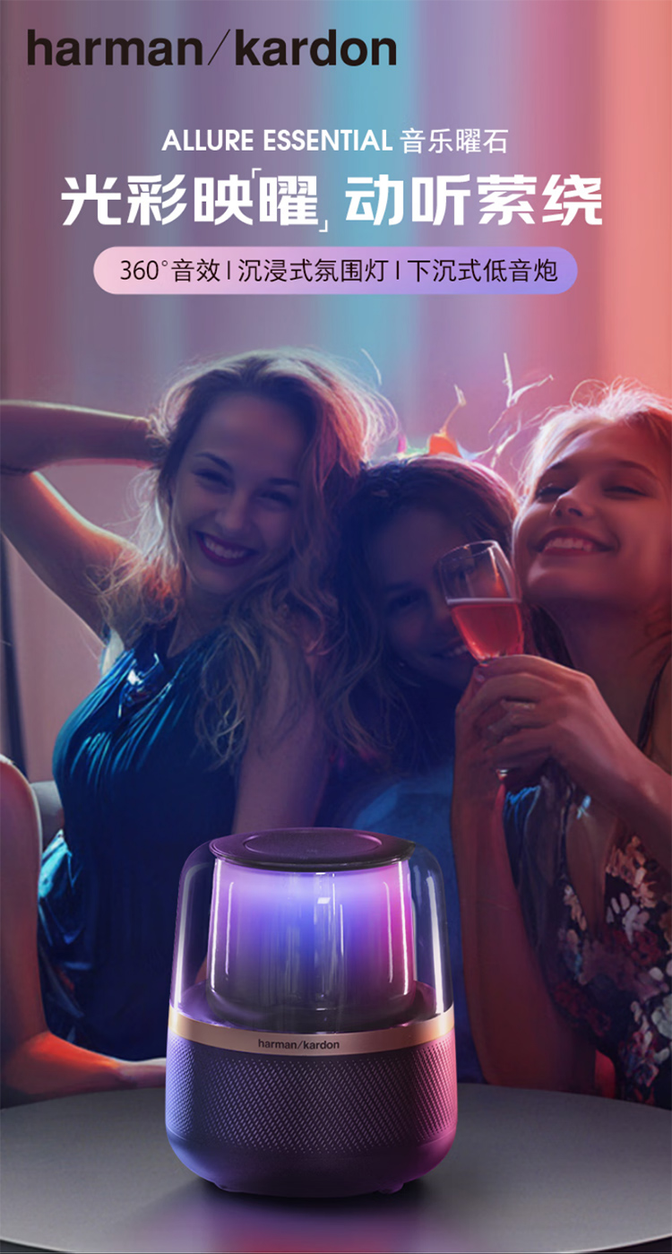 曼卡顿(HarmanKardon) 音乐曜石 蓝牙音箱 电脑桌面仿水晶琉璃4音响材质HIFI氛围灯国家补贴 Allure