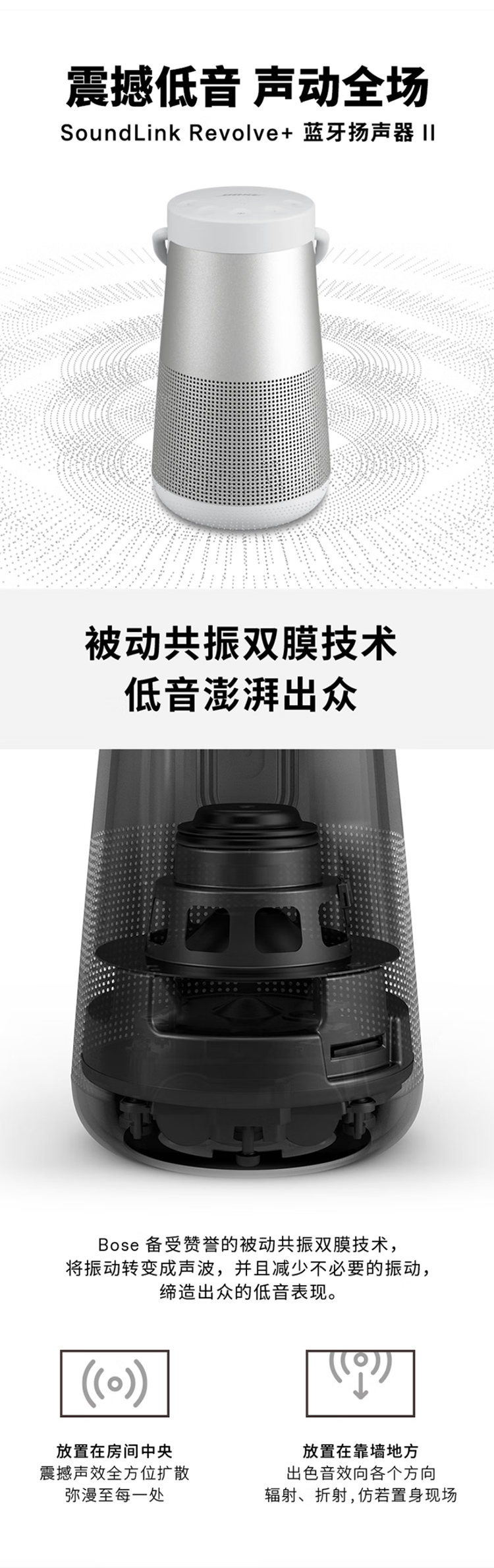 BoseSoundLink Revolve+ 蓝牙音响II黑色360度环绕防水电脑桌面音响大水壶二代