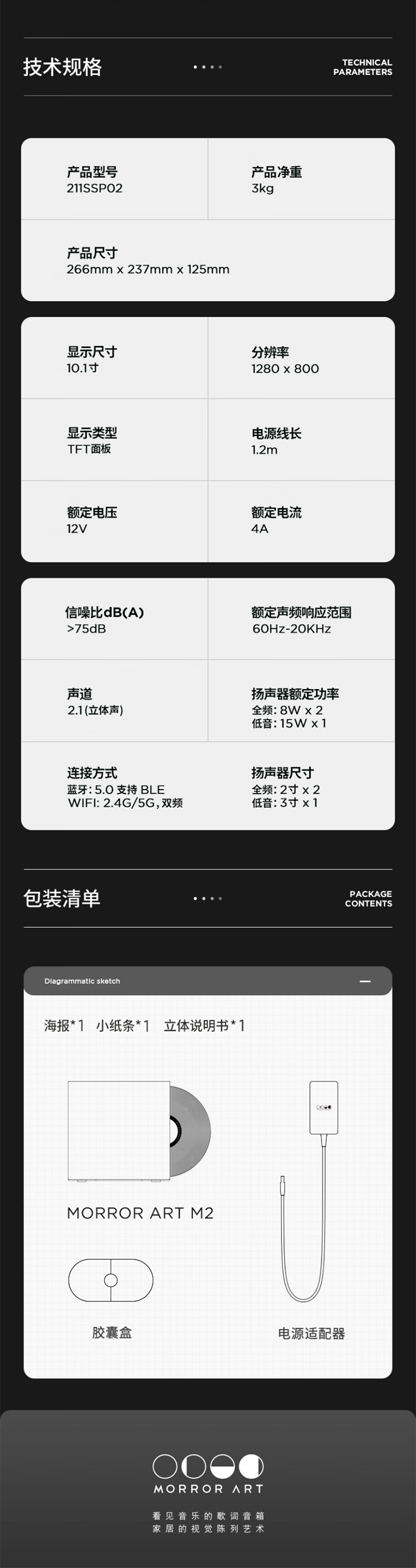 MORRORARTM2桌面歌词音箱悬浮字幕黑胶唱片蓝牙音响家用客厅卧室音响智能家居生日礼物 M2  1
