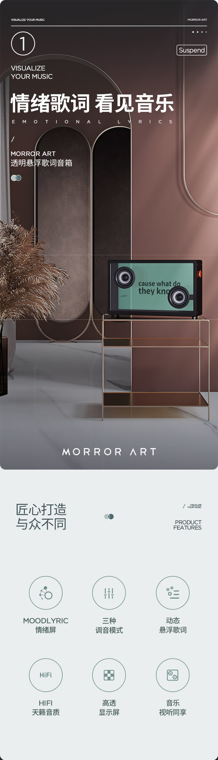 MORRORART悬浮歌词字幕音响无线蓝牙音响桌面透明可视化音箱家用客厅音箱智能家居生日礼物1