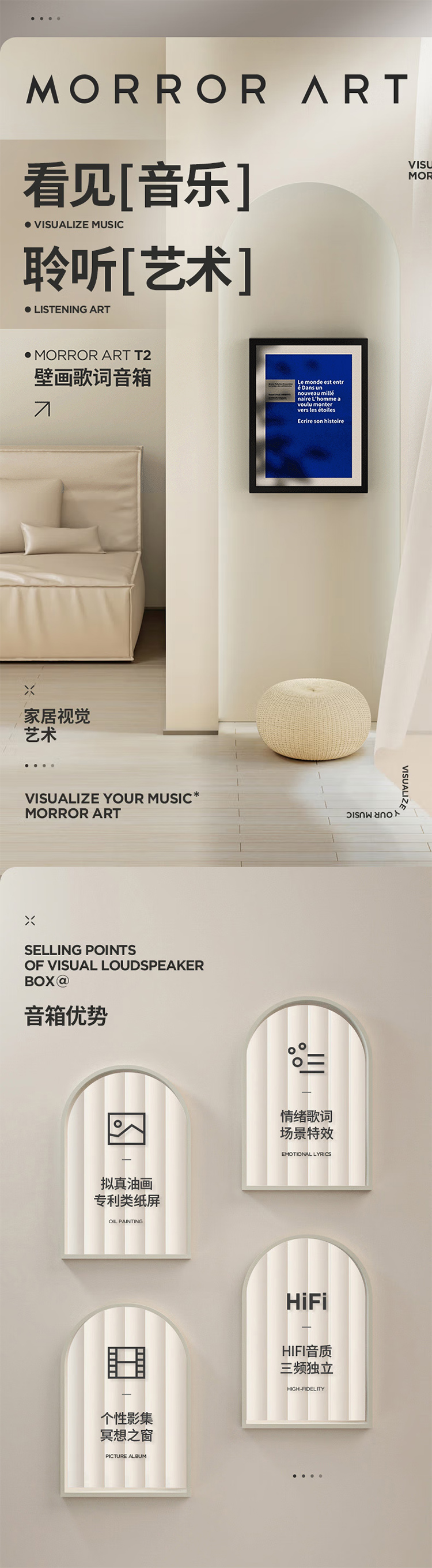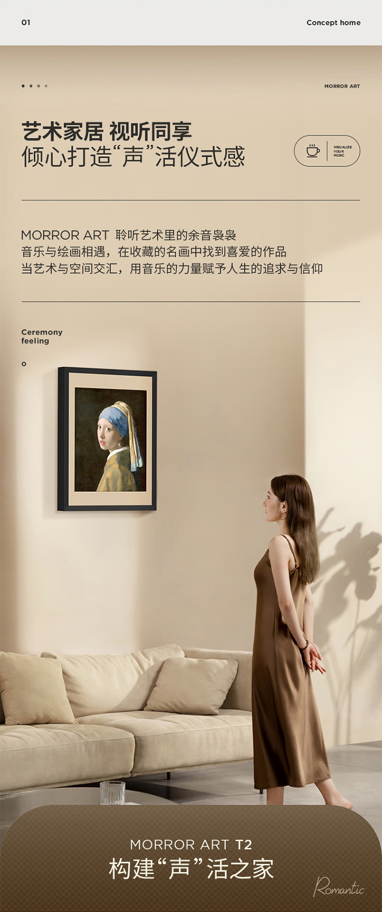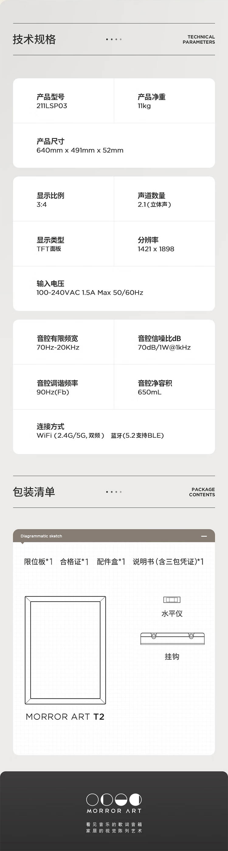 MORRORART T2壁画歌词音箱悬浮字幕壁挂蓝牙油画音响类纸屏专利家用客厅卧室智能家居生日礼物1