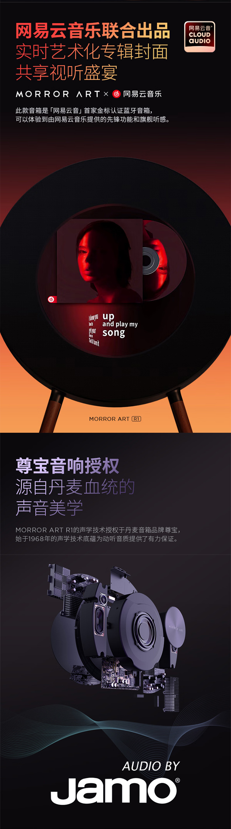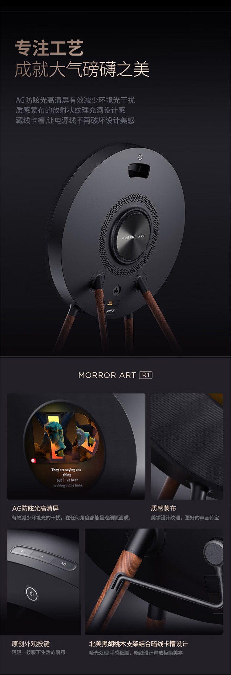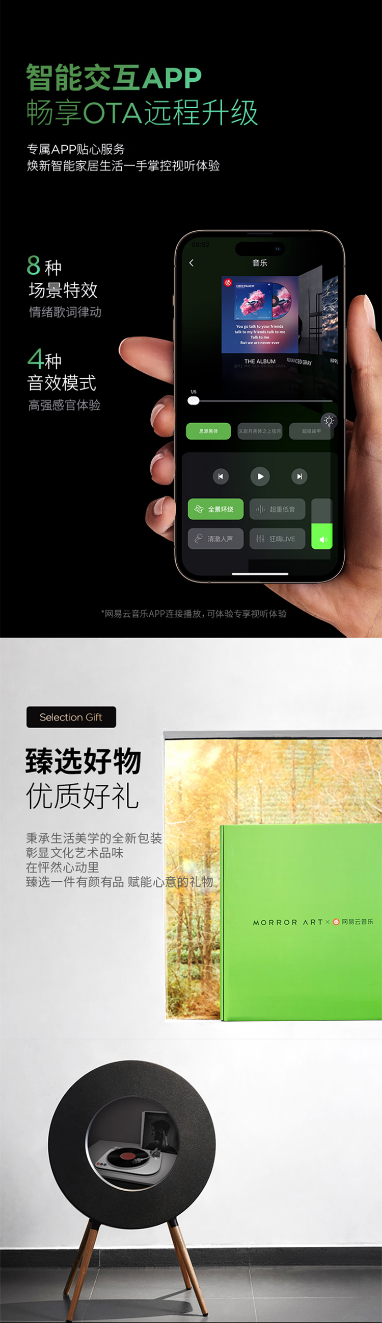 MORRORARTR1悬浮歌词唱片音响家用智能蓝牙音箱动态情绪音箱HIFI音质 智能家居生日纪念礼物 唱片歌词音箱-黑色