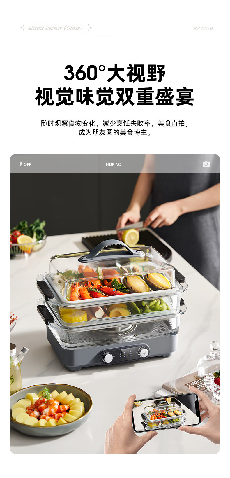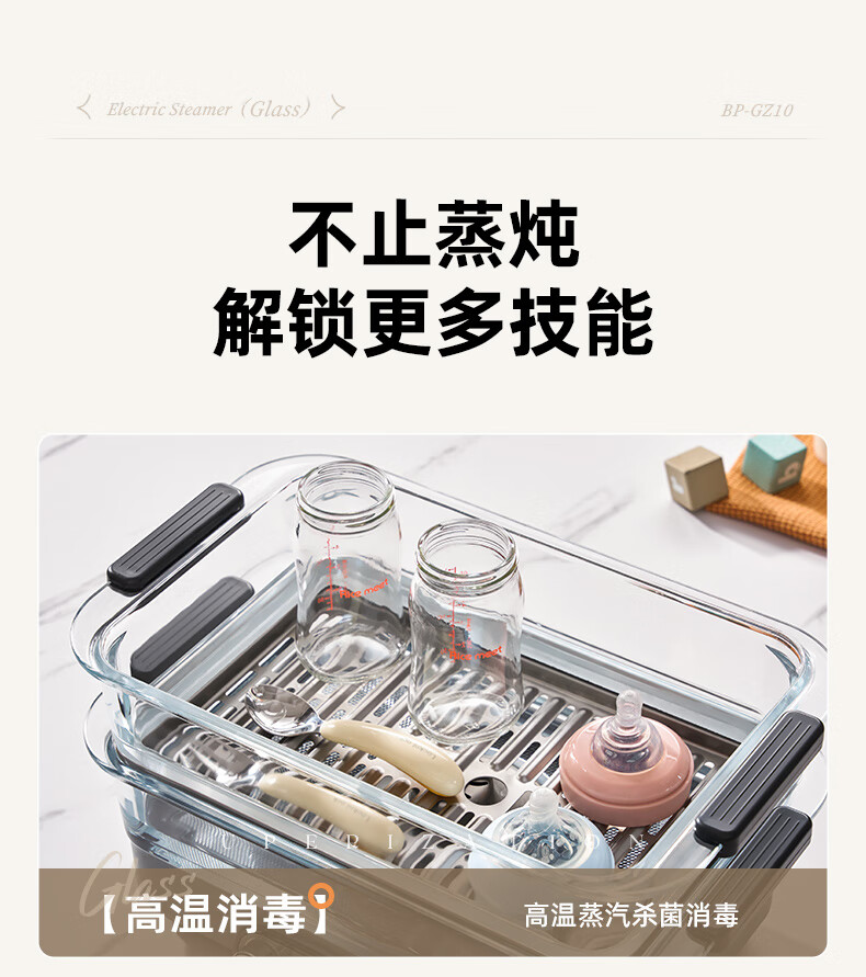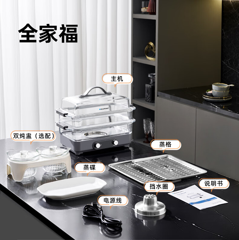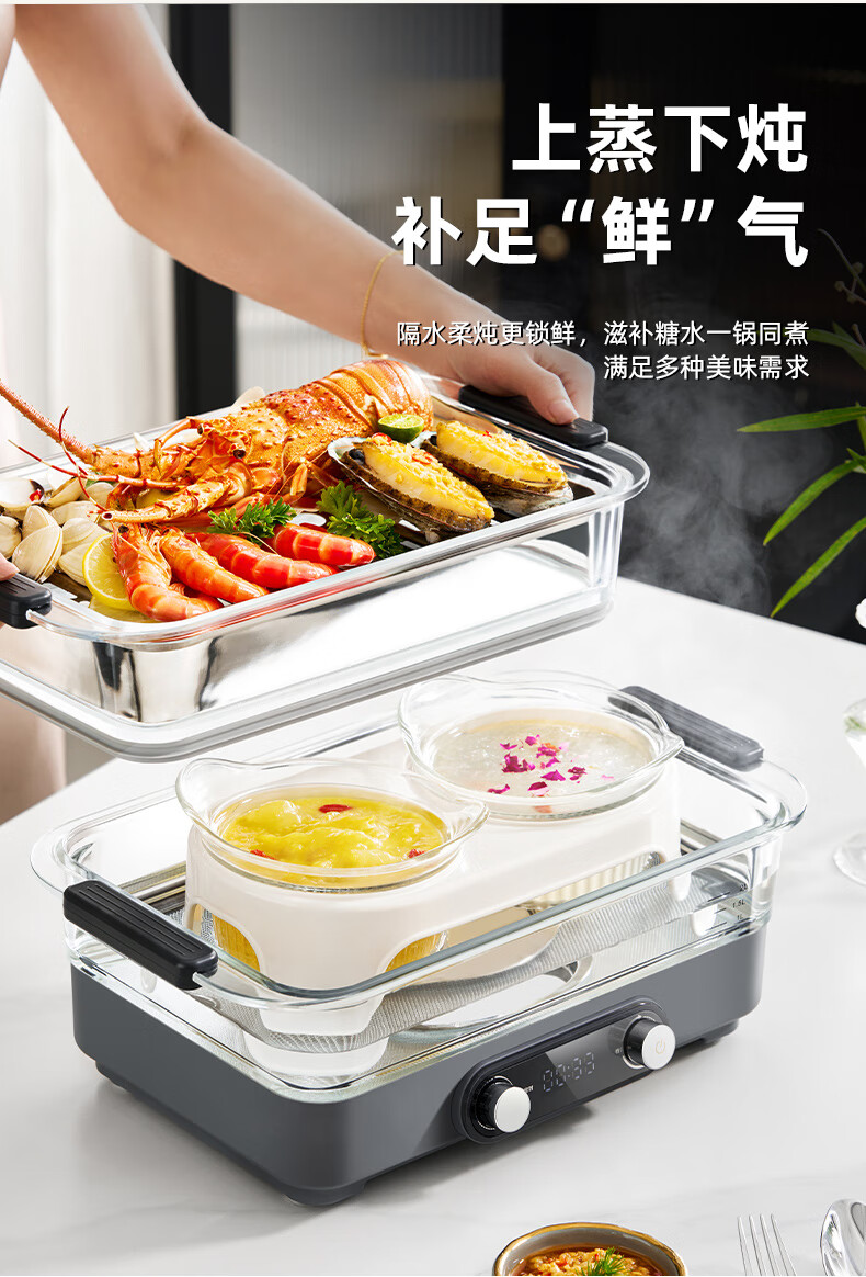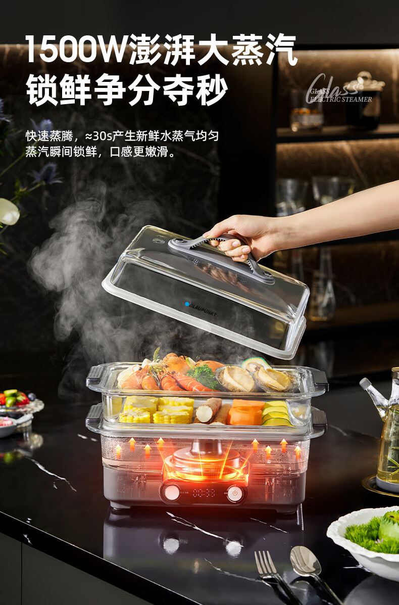 蓝宝·玻璃电蒸锅+玻璃炖盅套餐