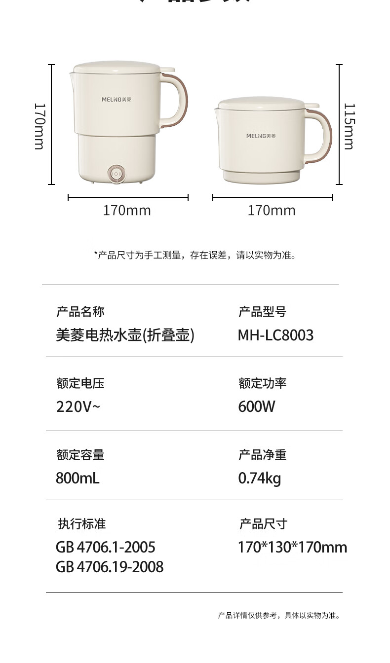 美菱(MeiLing)MH-LC8003电热水壶(折叠壶)