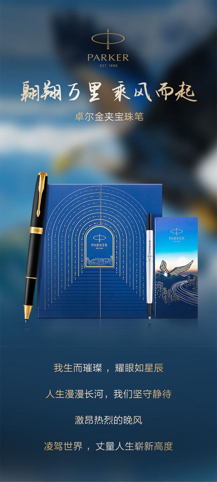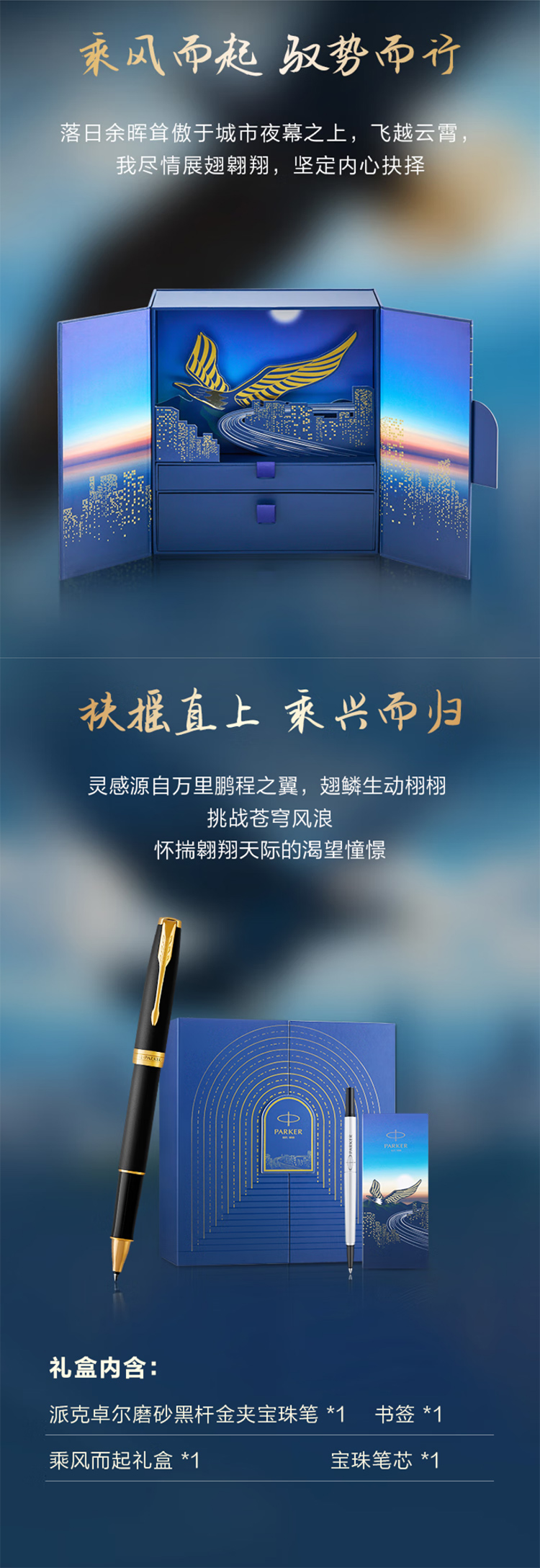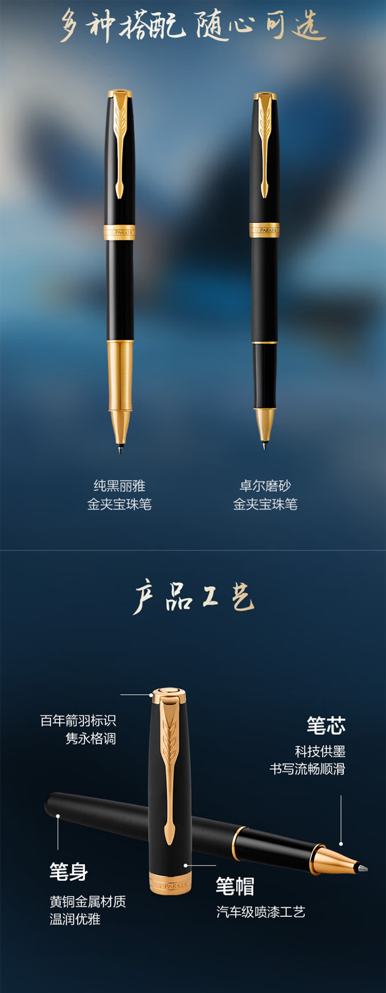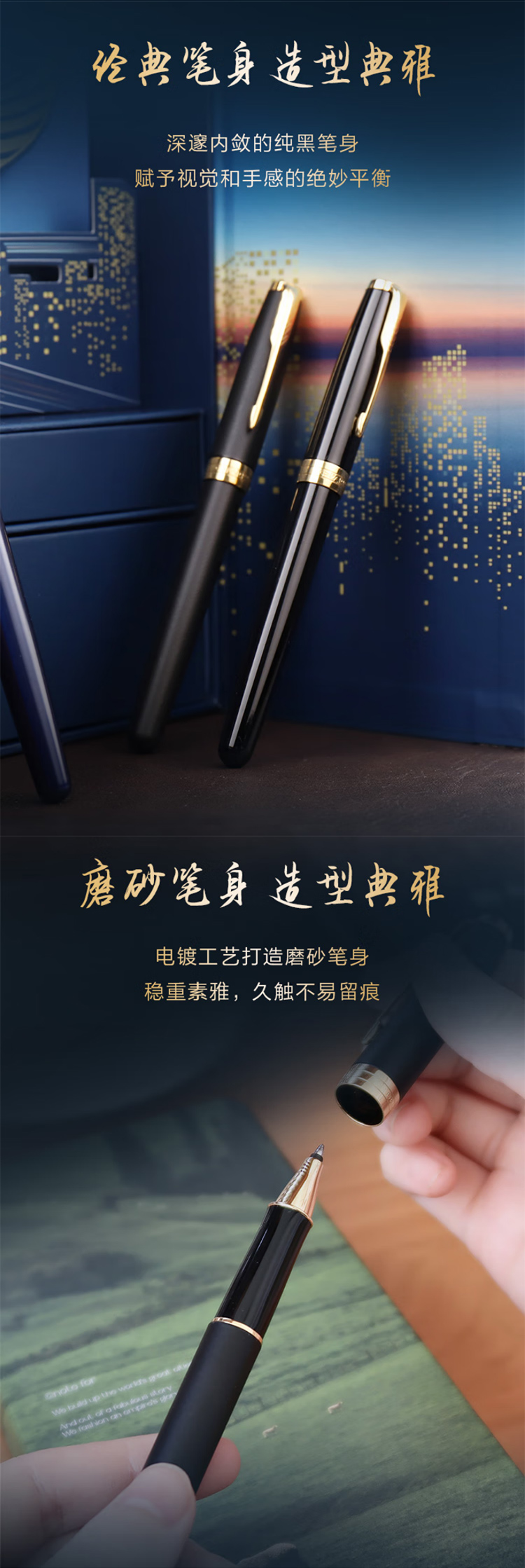 派克(PARKER)高端签字笔礼盒 轻奢节日定制礼物 卓尔磨砂黑金夹宝