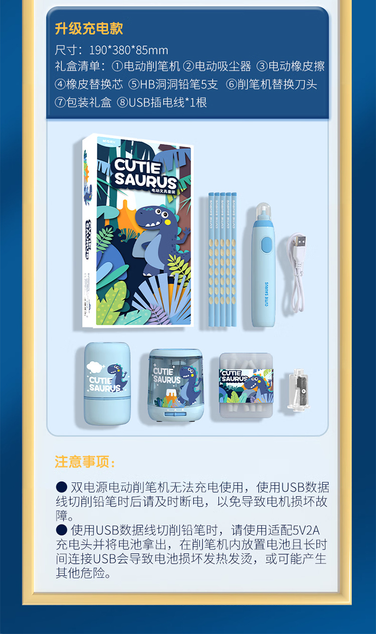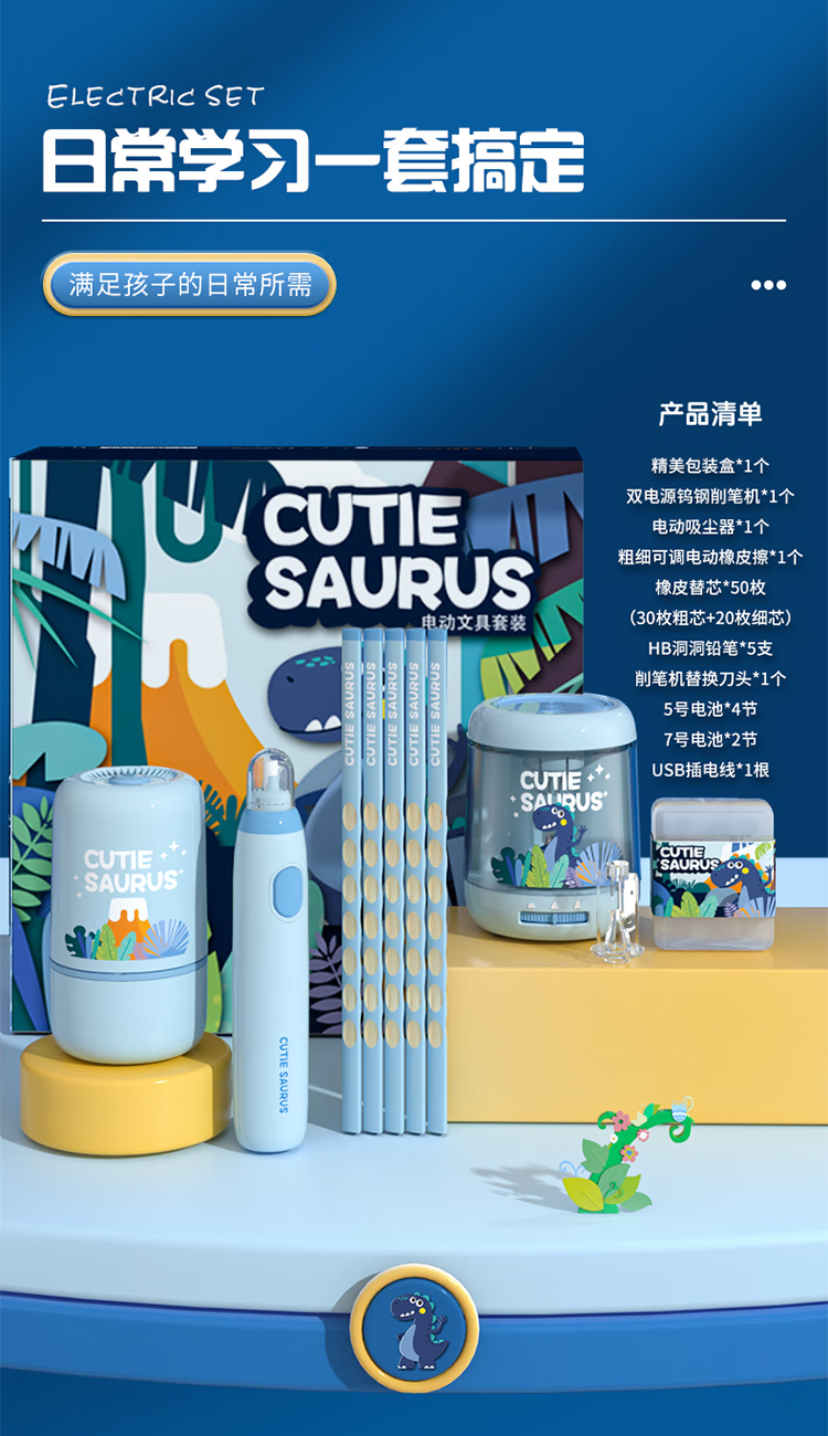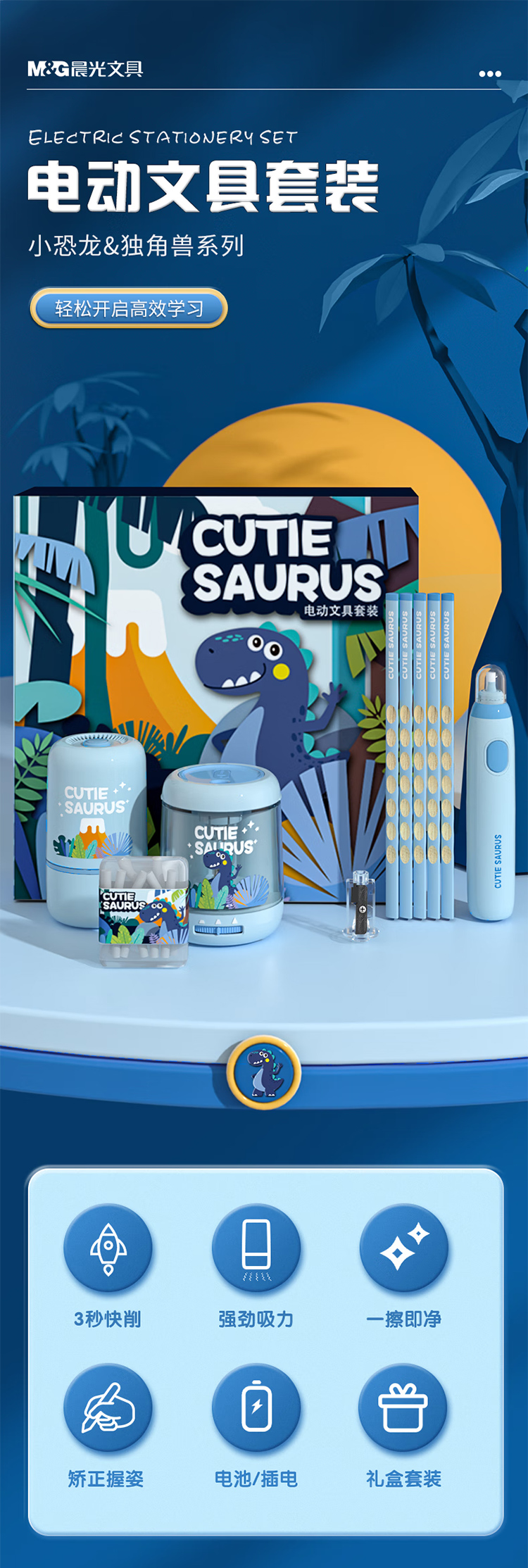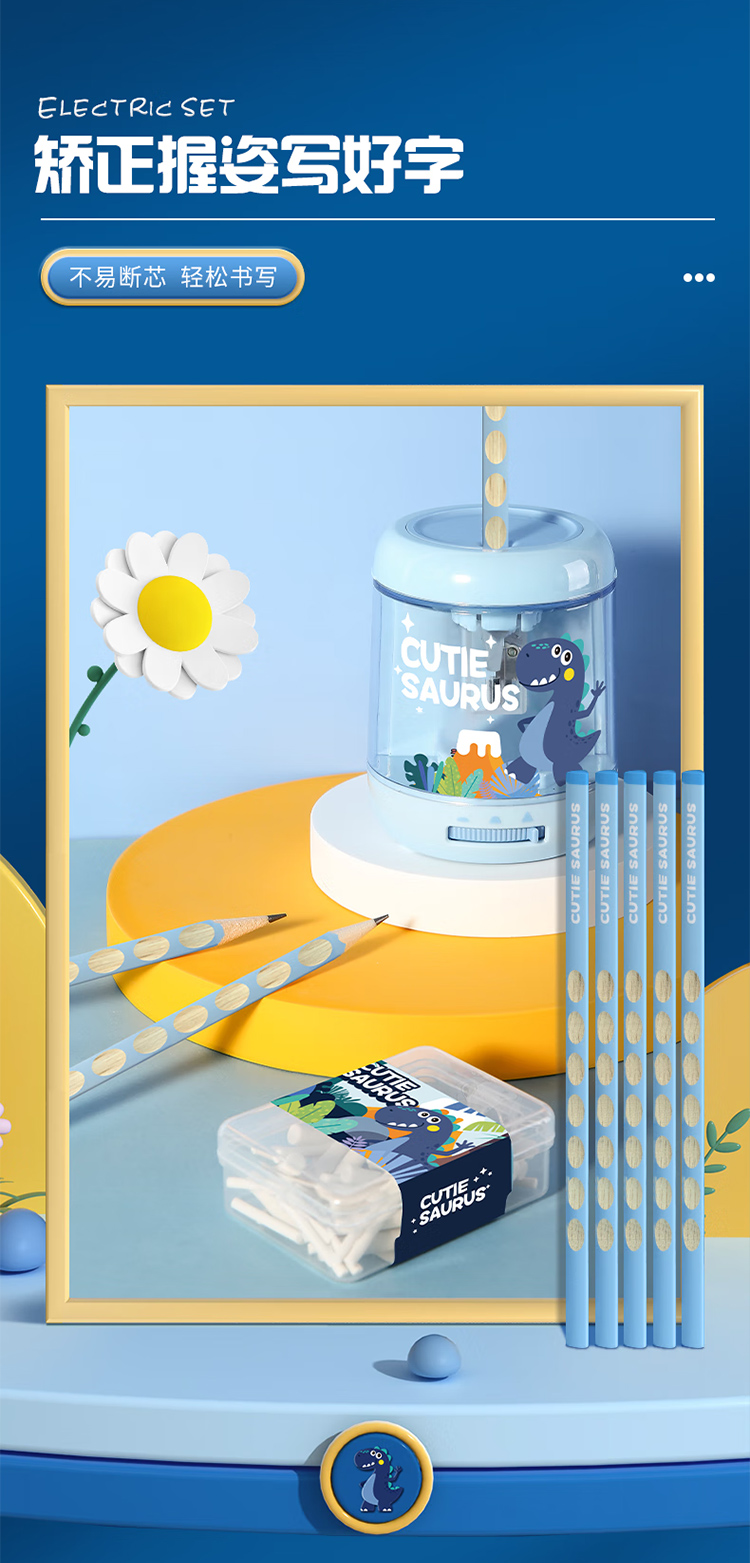 晨光文具电动削笔器文具套装儿童节日礼盒女孩生日礼物小学生一二年级学习用品幼儿园开学盒儿童节男孩 丛林小恐龙