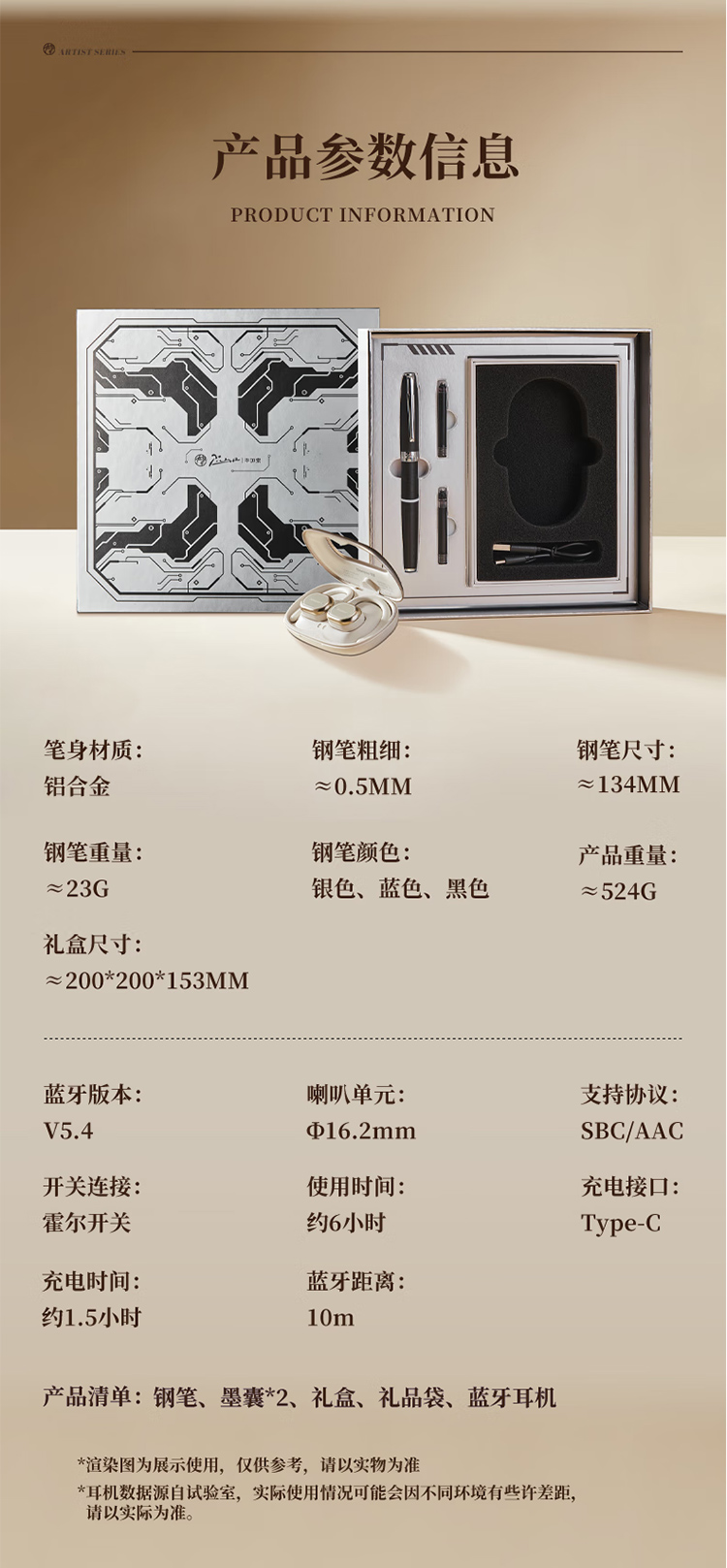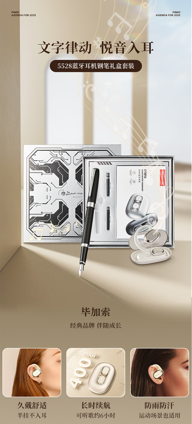 PIMIO毕加索5822蓝牙耳机套装成人钢笔礼盒520送女友签字笔
