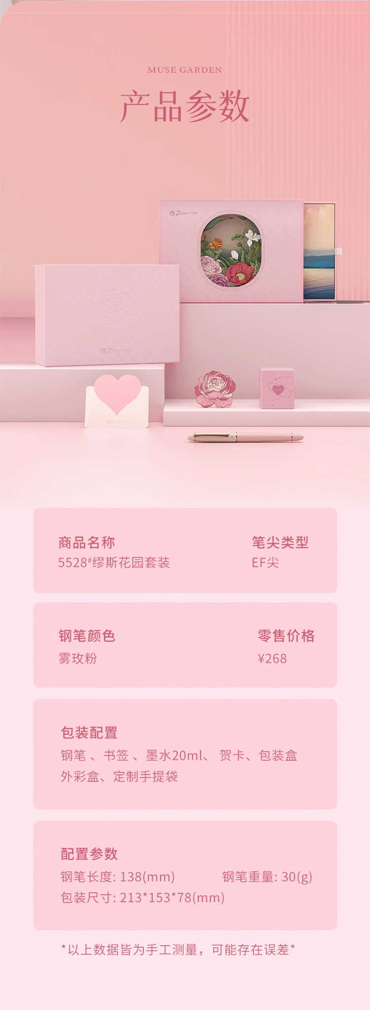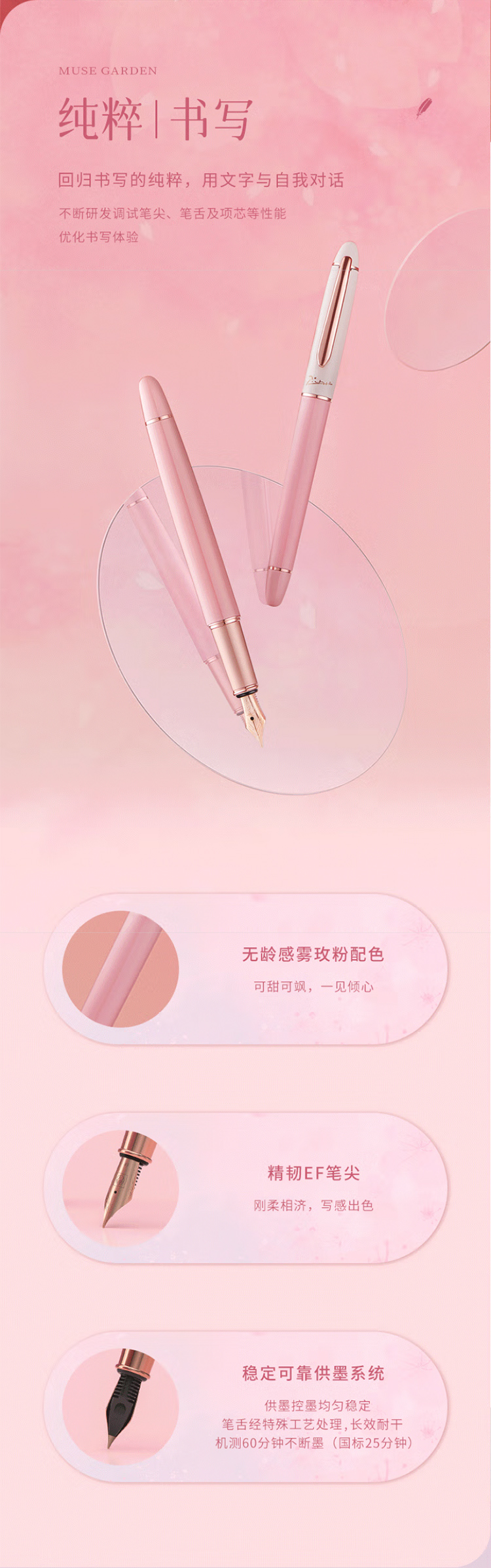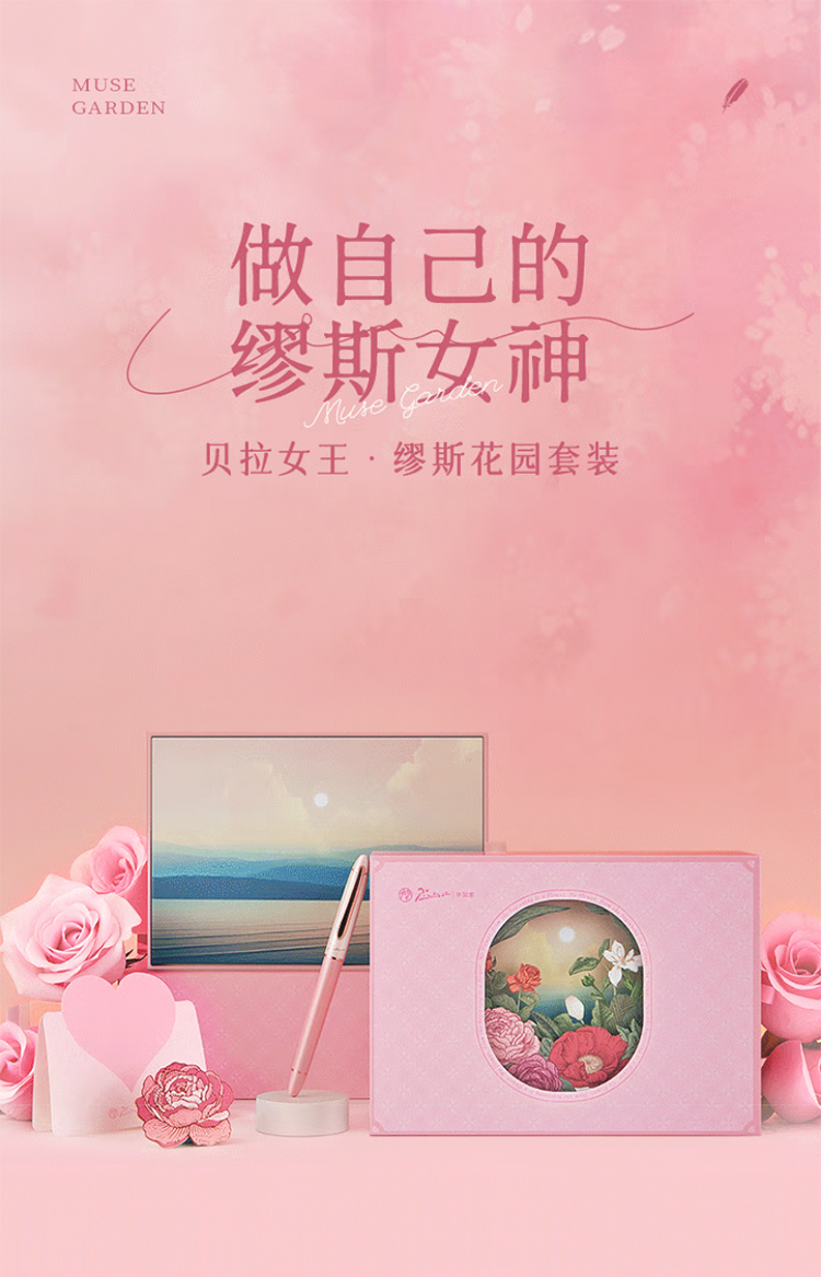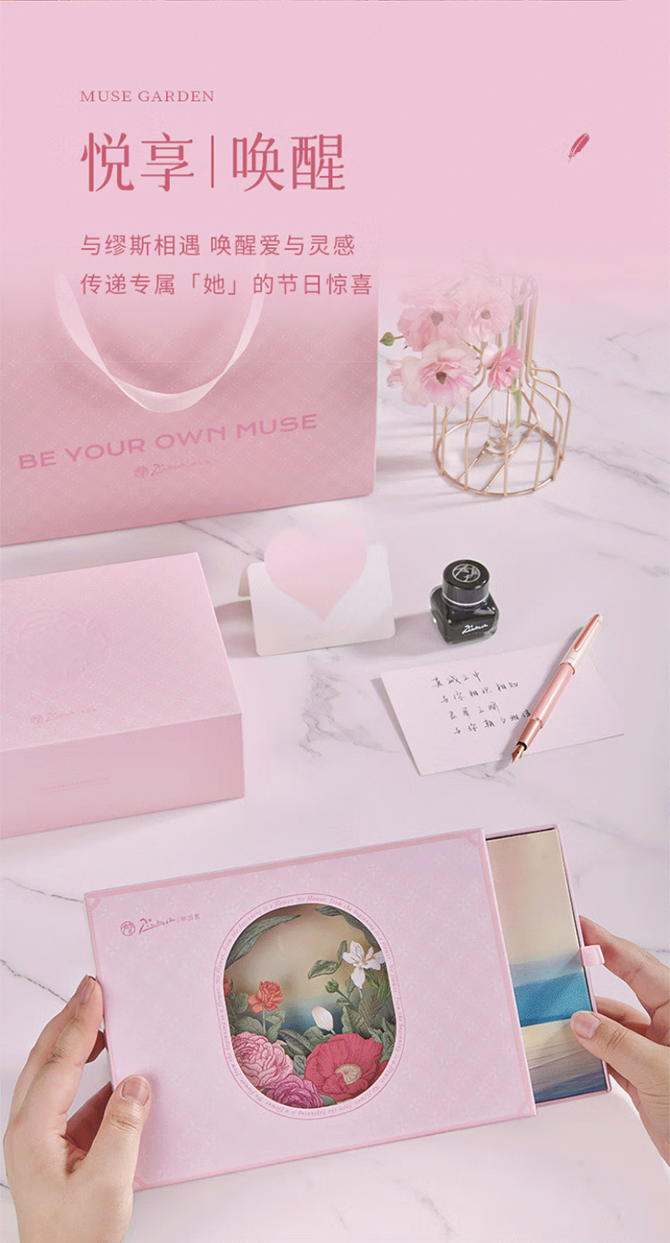 毕加索5528缪斯花园钢笔礼盒 雾霾粉女神钢笔学生练字钢笔墨水笔