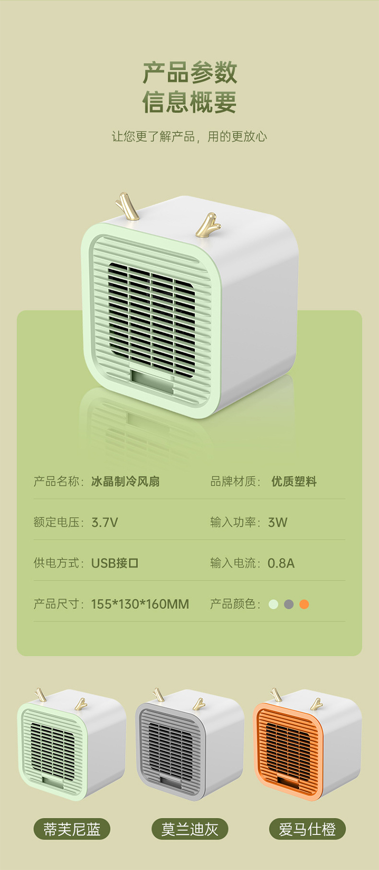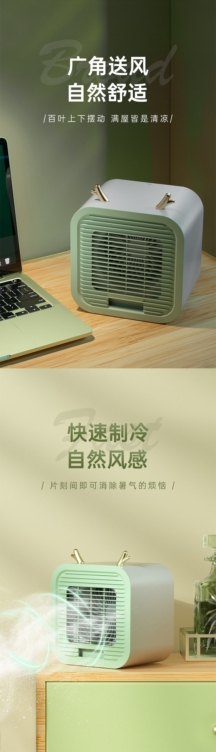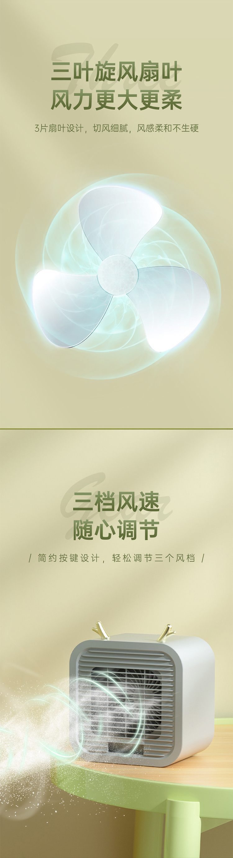 便携式USB空调扇加冰水冷风扇办公室便捷3档桌面风扇