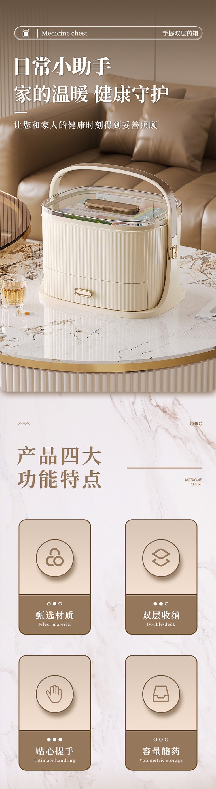 家用便捷式药箱家庭装全套急救箱大容量药品医疗箱分格手提医药箱