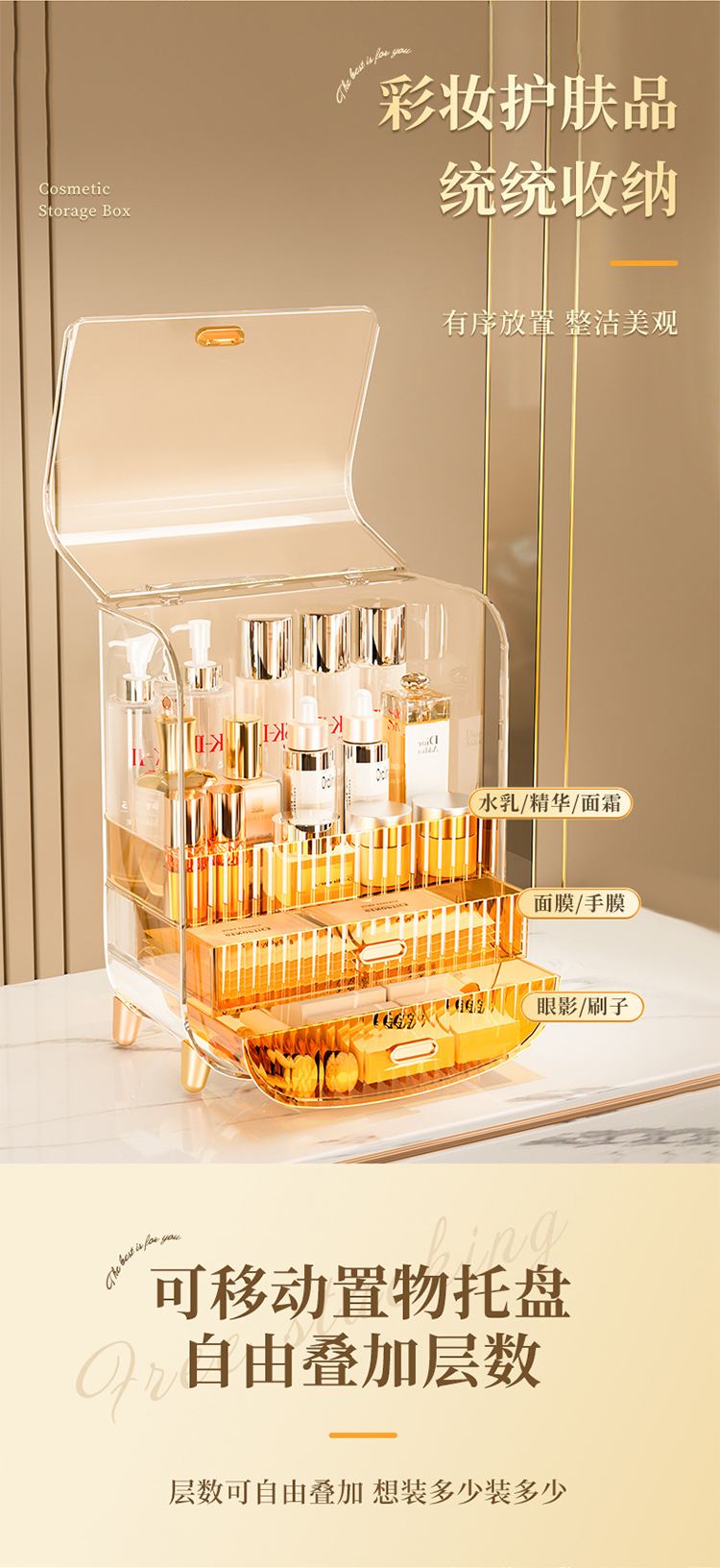 化妆品收纳盒宿舍梳妆台护肤品面膜口红收纳盒子抽屉式收纳置物架