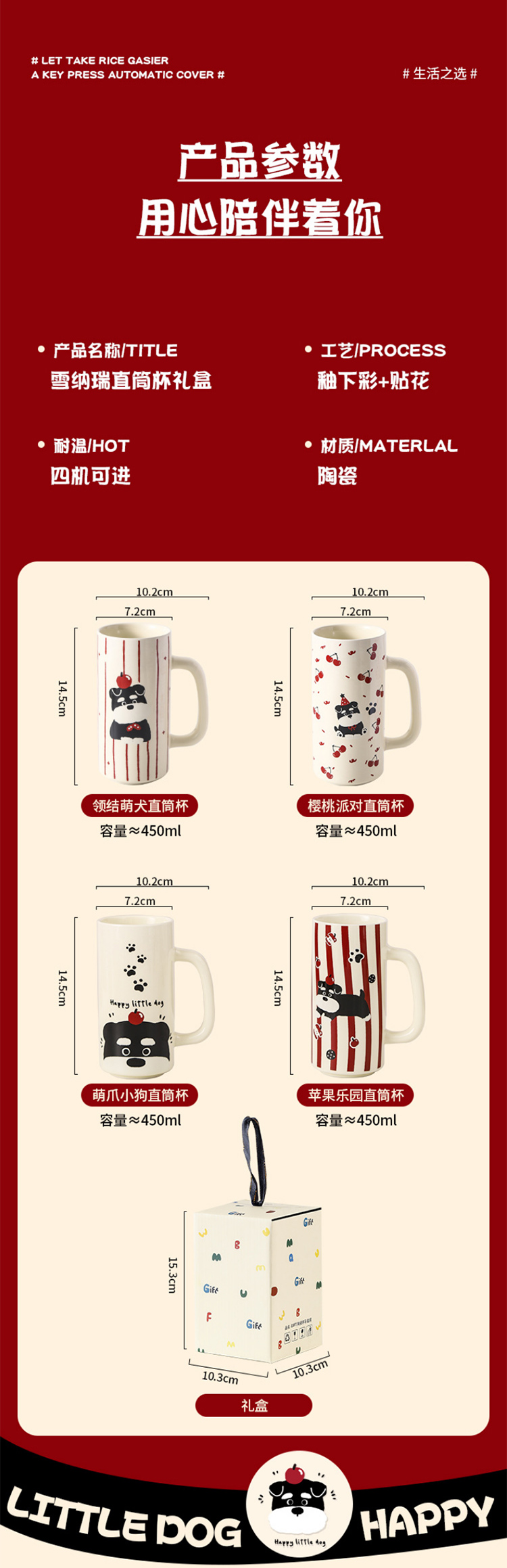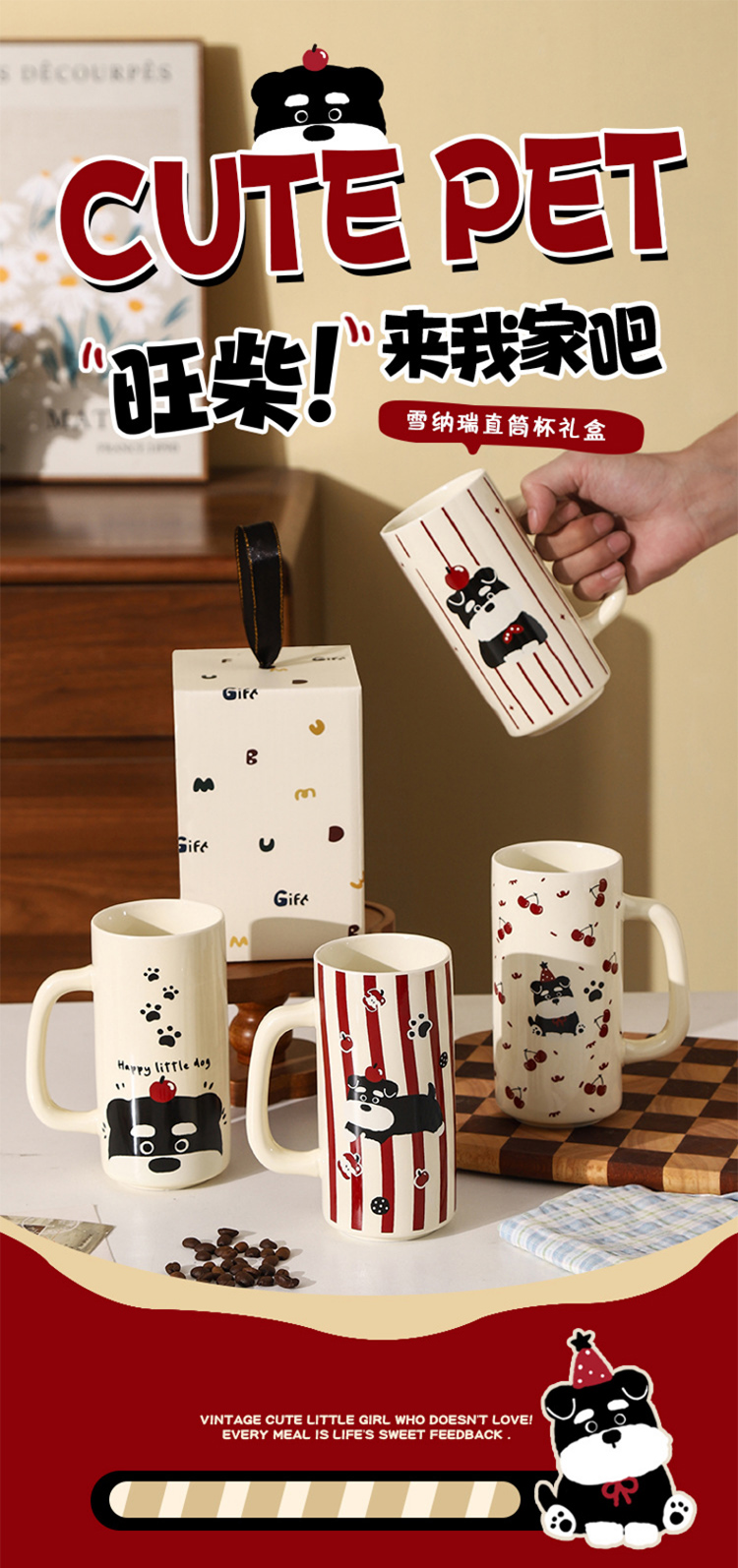 雪纳瑞陶瓷直筒杯