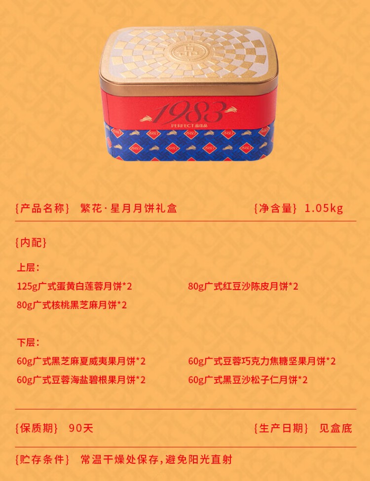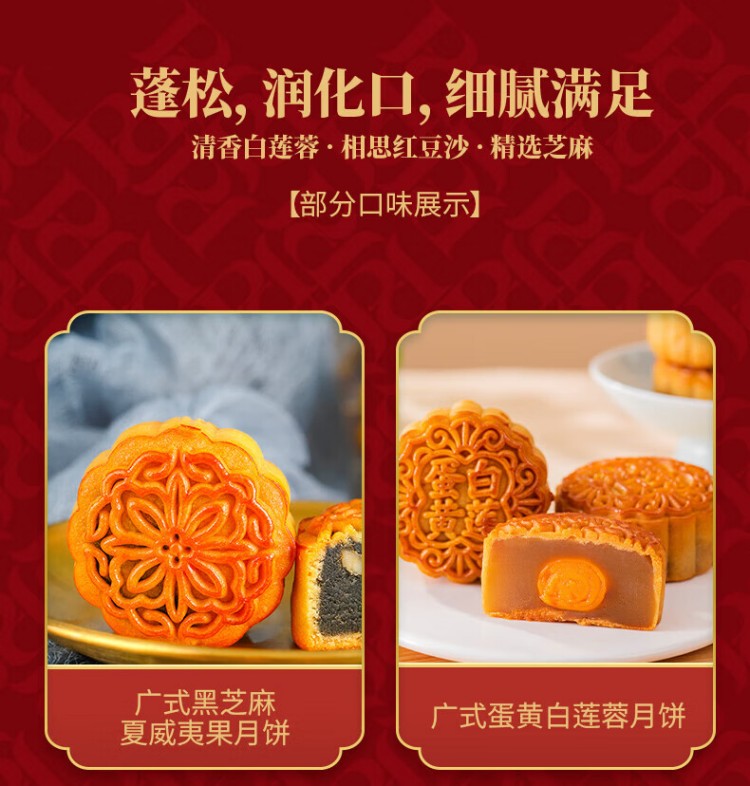繁花·星月 广式蛋黄白莲蓉芝麻豆沙松子仁坚果月饼礼盒