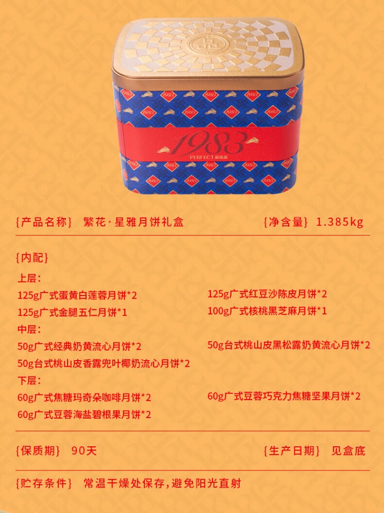 繁花·星雅月饼礼盒 广式金腿五仁黑松露奶黄流心月饼