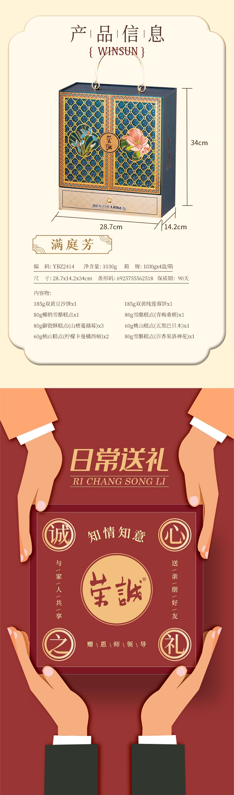 荣诚满庭芳糕点礼盒双黄豆沙零食纯白莲蓉下午茶中秋