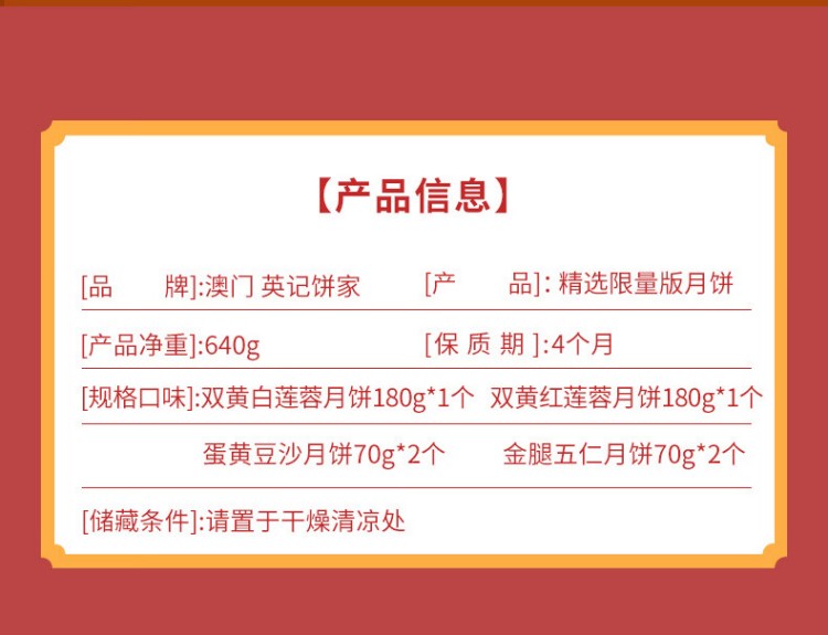 澳门英记精选限量版月饼640g