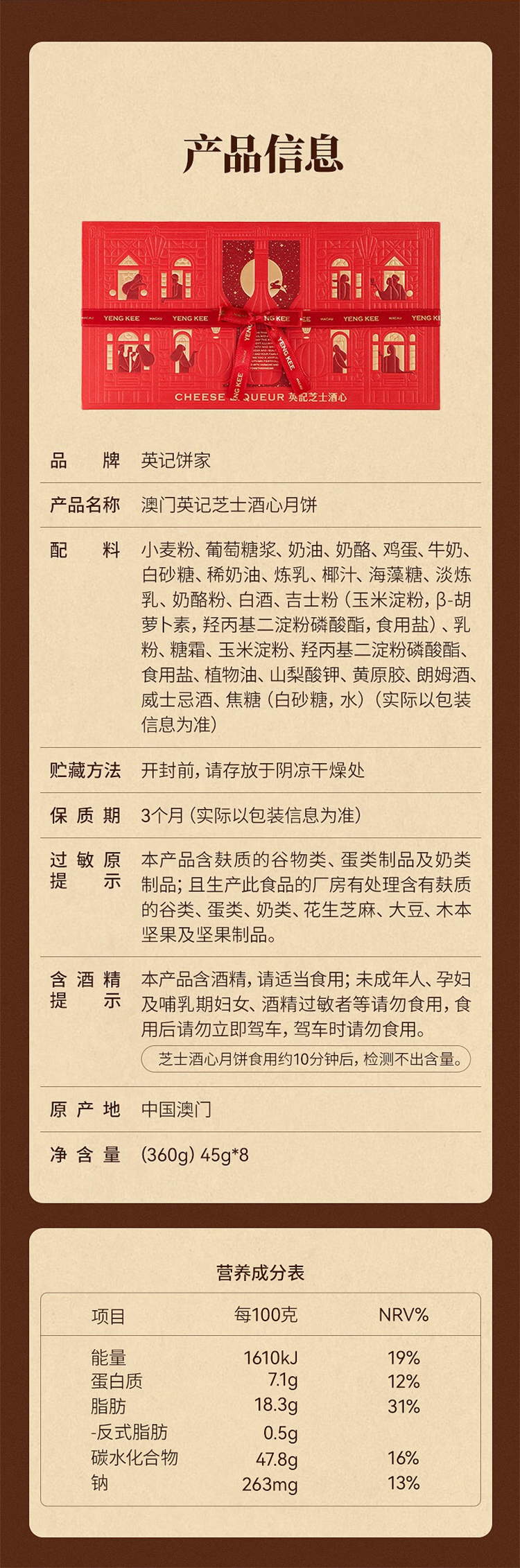 澳门英记芝士酒心月饼360g