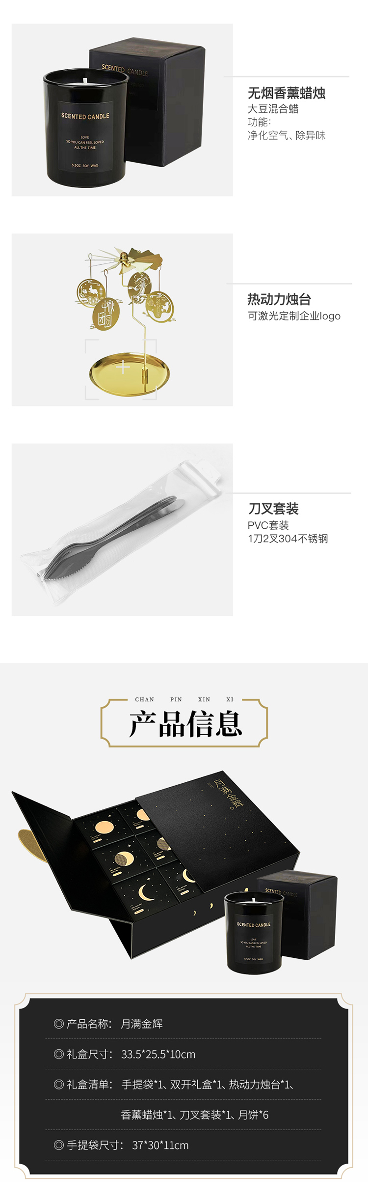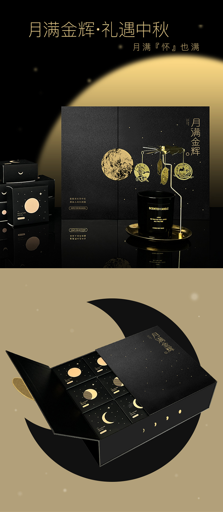 月满金辉系列金属扣双开盒香薰刀叉中秋礼盒装