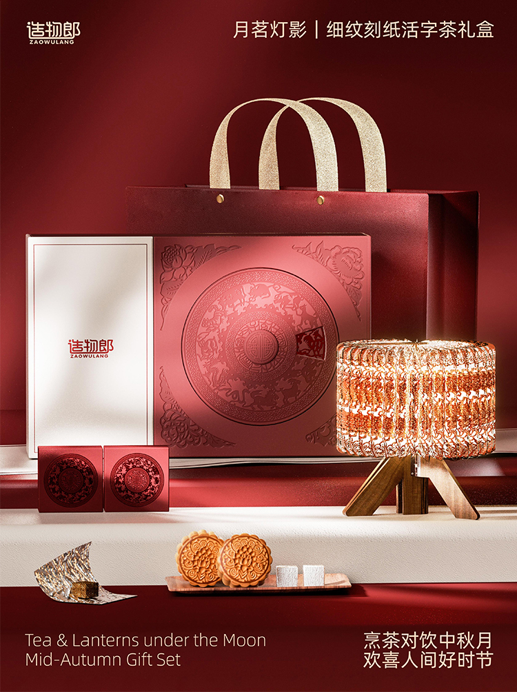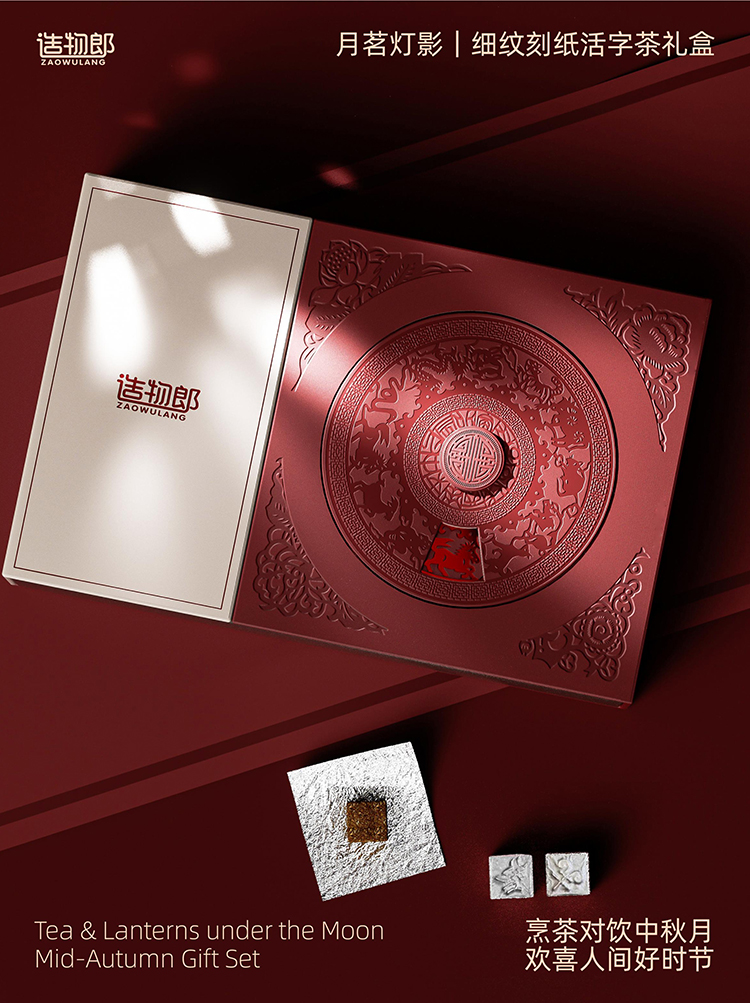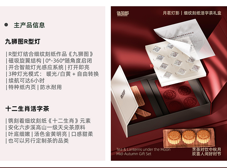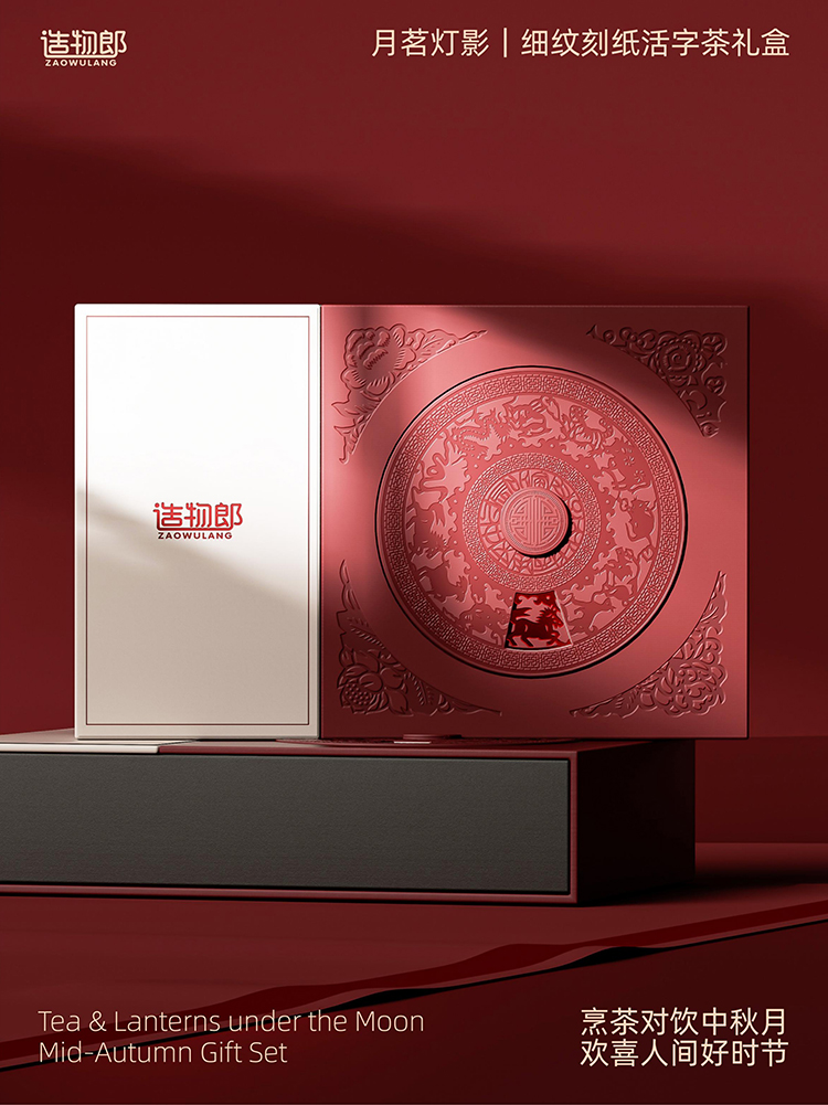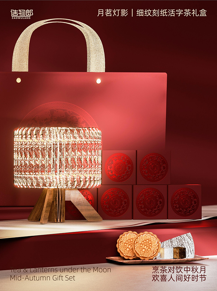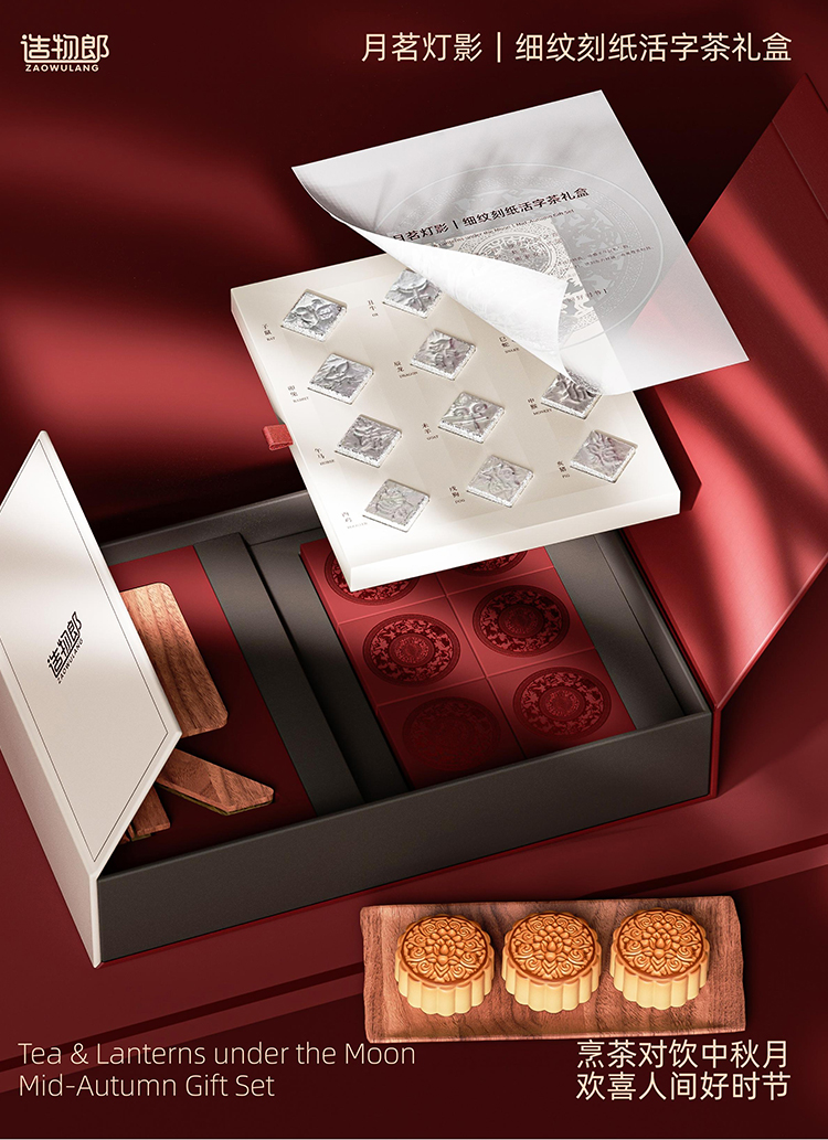 月茗灯影细纹刻纸活字茶中秋新款月饼礼盒装定制商务伴手礼
