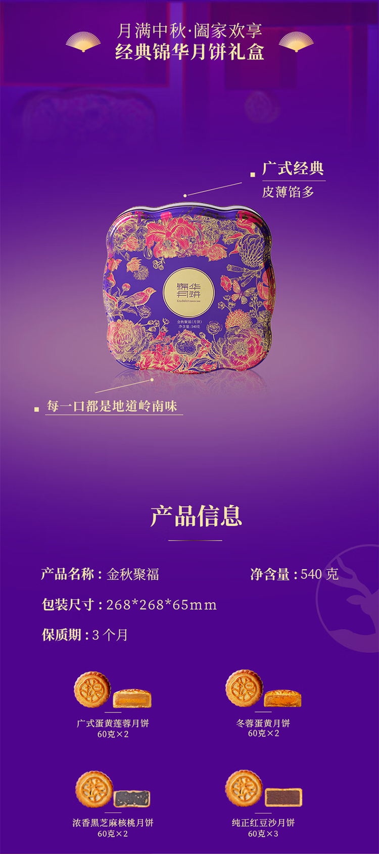 月饼礼盒蛋黄莲蓉月饼纯正红豆沙月饼中秋团购送礼 锦华繁华贺月560g