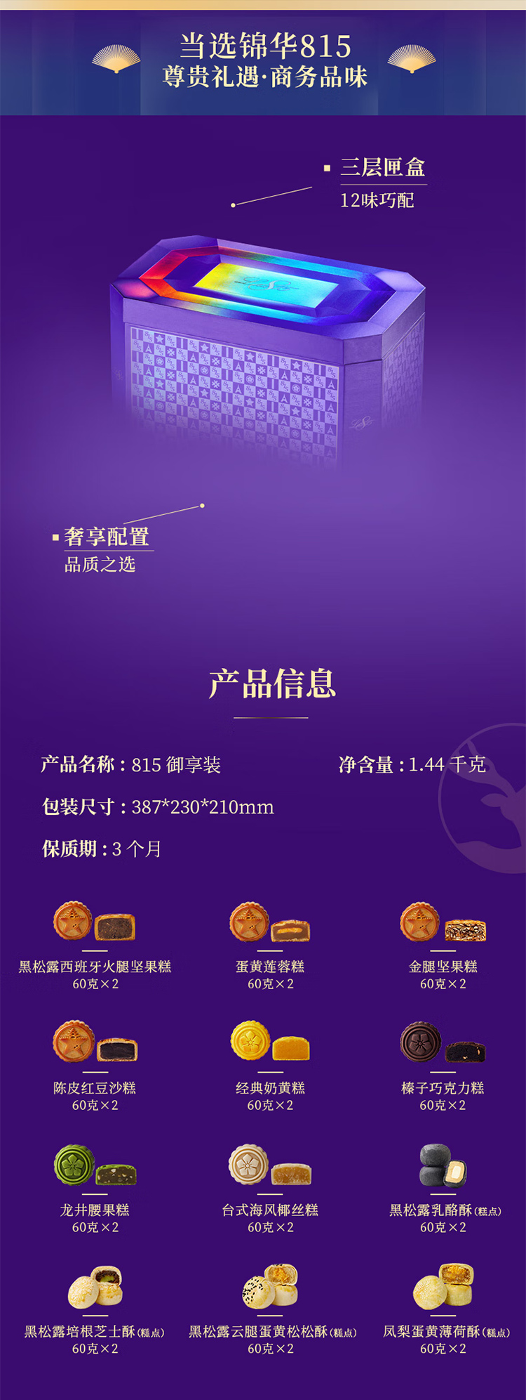 锦华815御享装月饼礼盒1440g蛋黄莲蓉黑松露流心奶黄中秋送礼高端