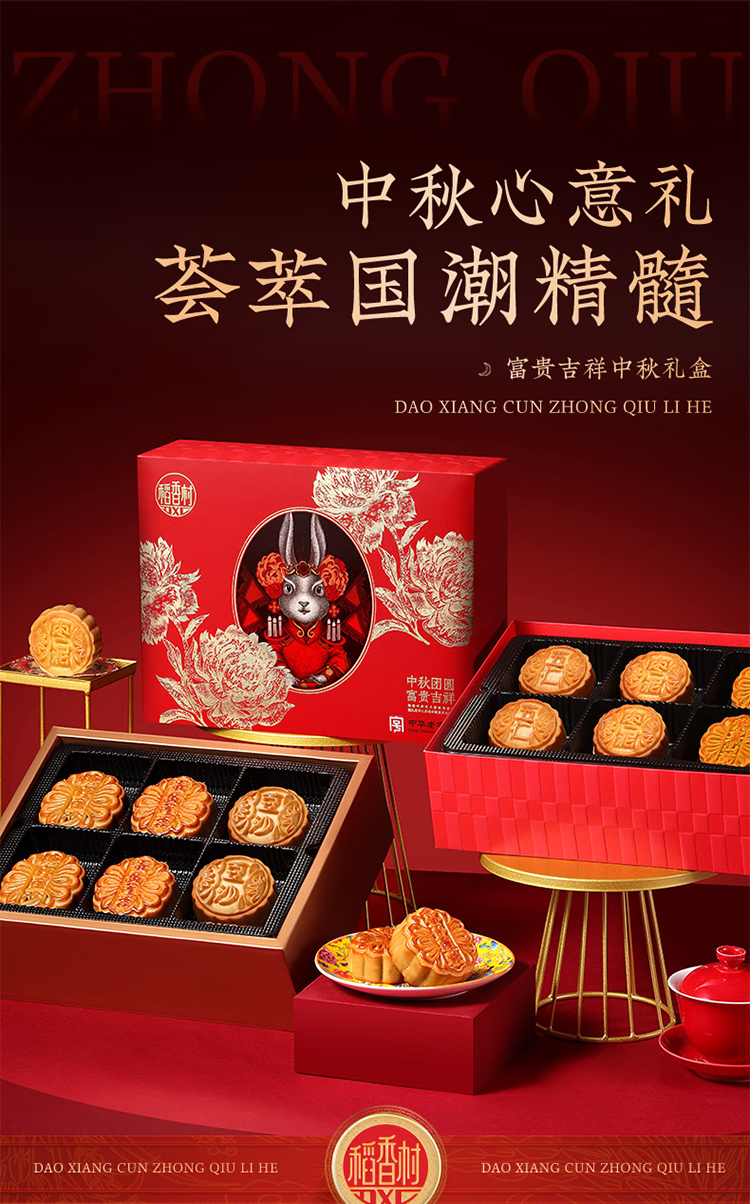 中秋月饼礼盒传统手工月饼多口味组合中秋礼品福利苏式月饼 富贵吉祥月饼礼盒600g