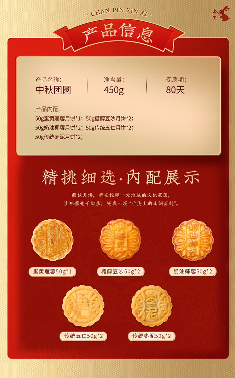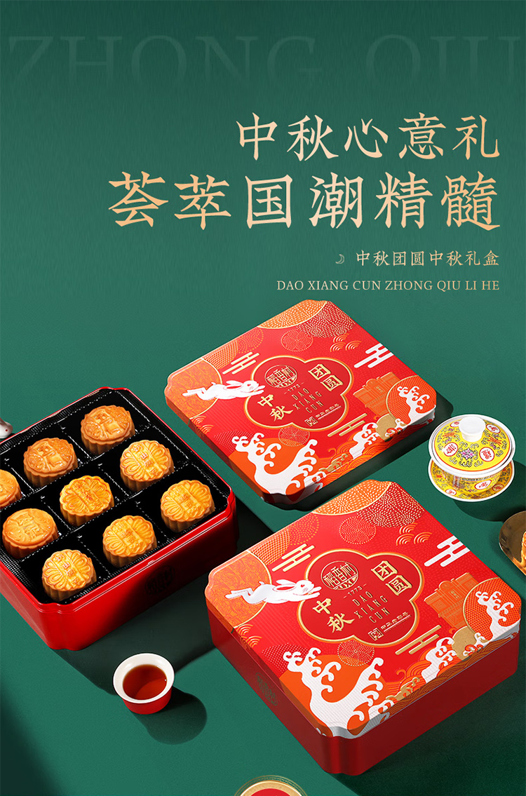 稻香村月饼礼盒蛋黄莲蓉云腿月饼玫瑰传统五仁中秋节商务送礼团购福利 稻香村中秋团圆450g【铁盒9饼5味】