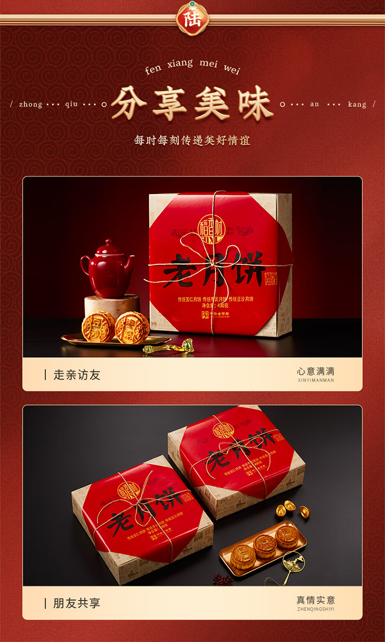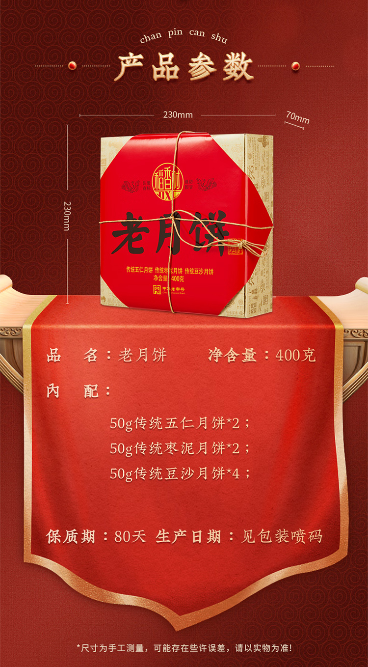 稻香村老月饼400克五仁豆沙枣泥组合中秋节礼品老式饼盒装 400克老月饼