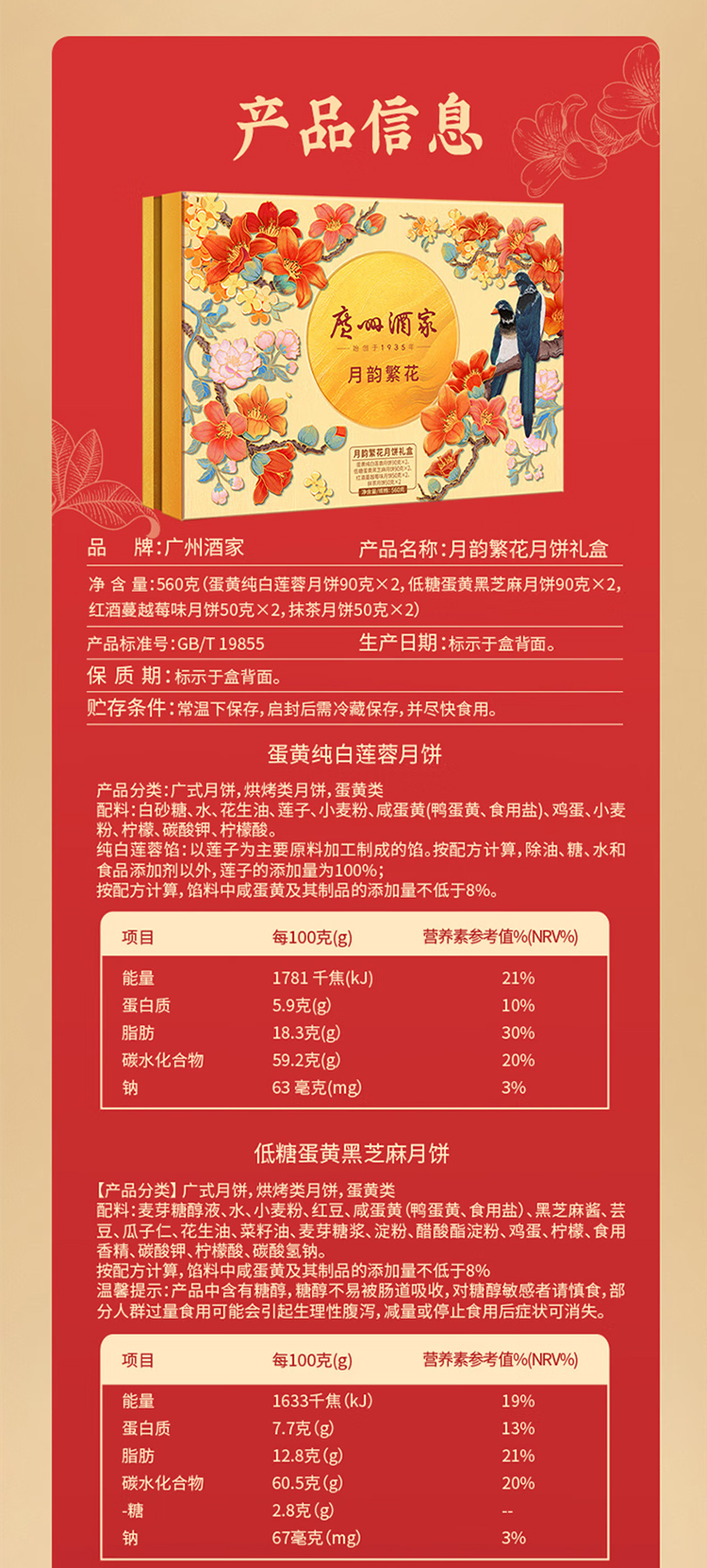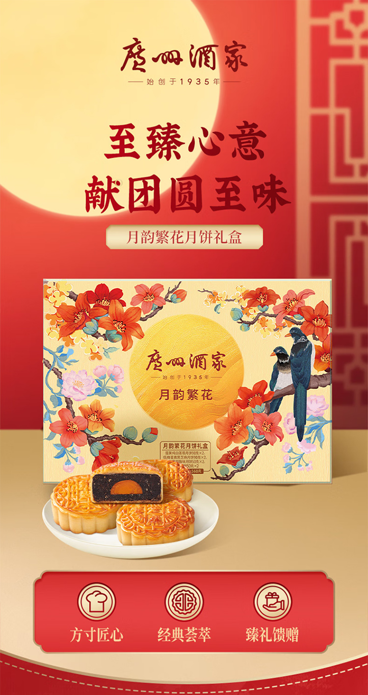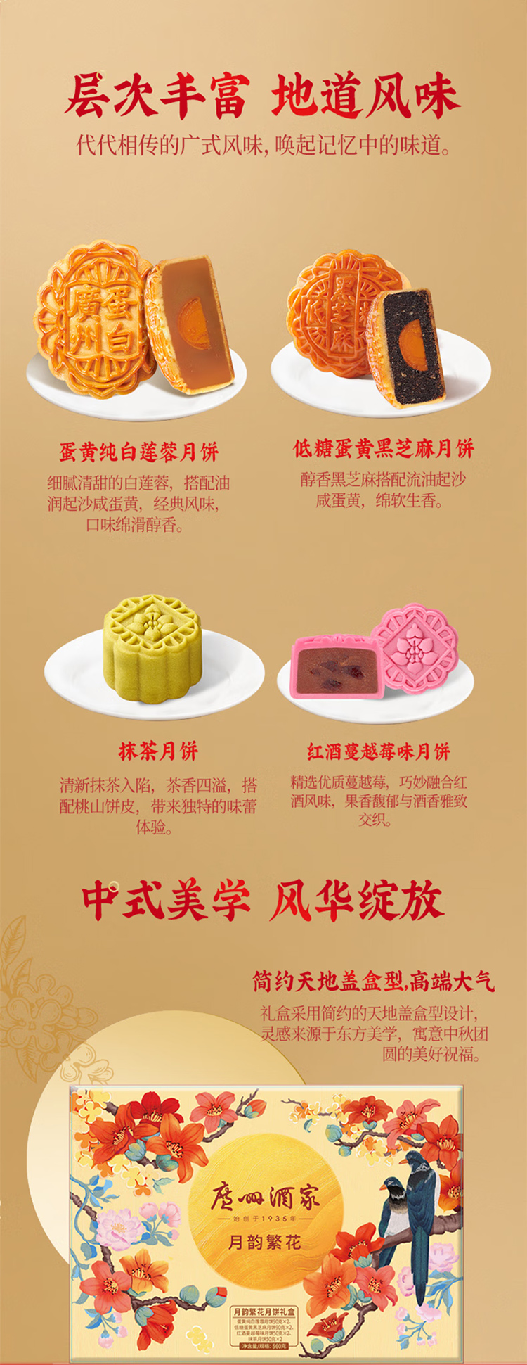 广州酒家中华老字号月饼礼盒广东中秋节日送礼礼品 月韵繁花月饼礼盒560g
