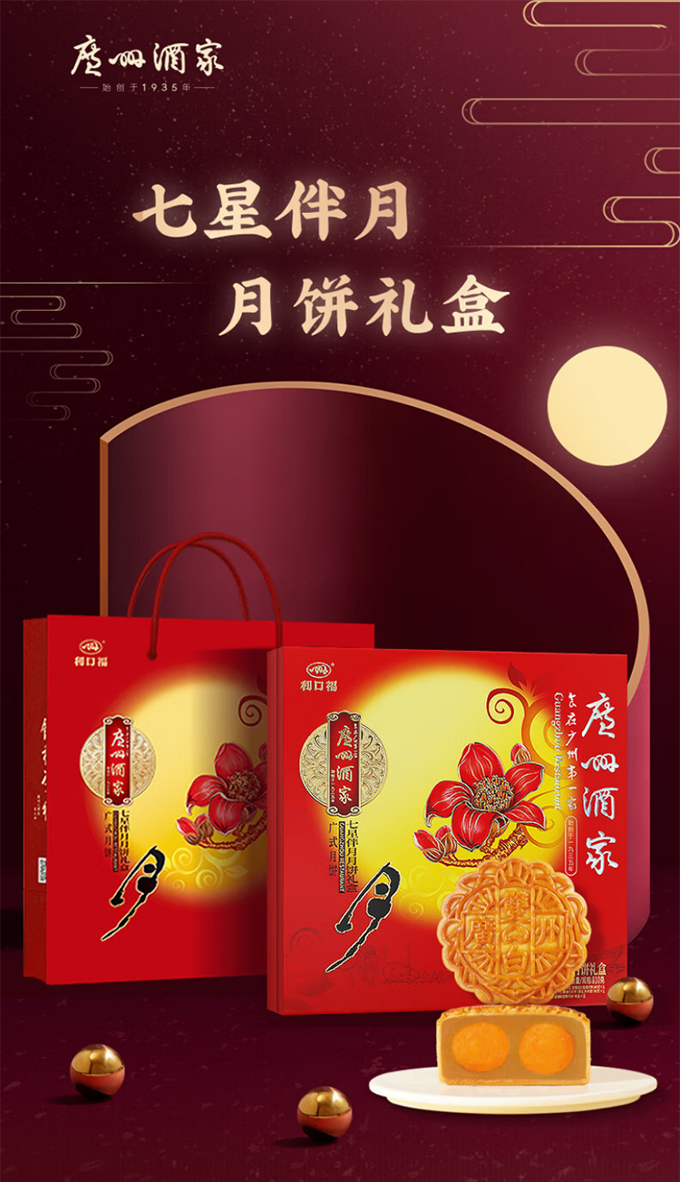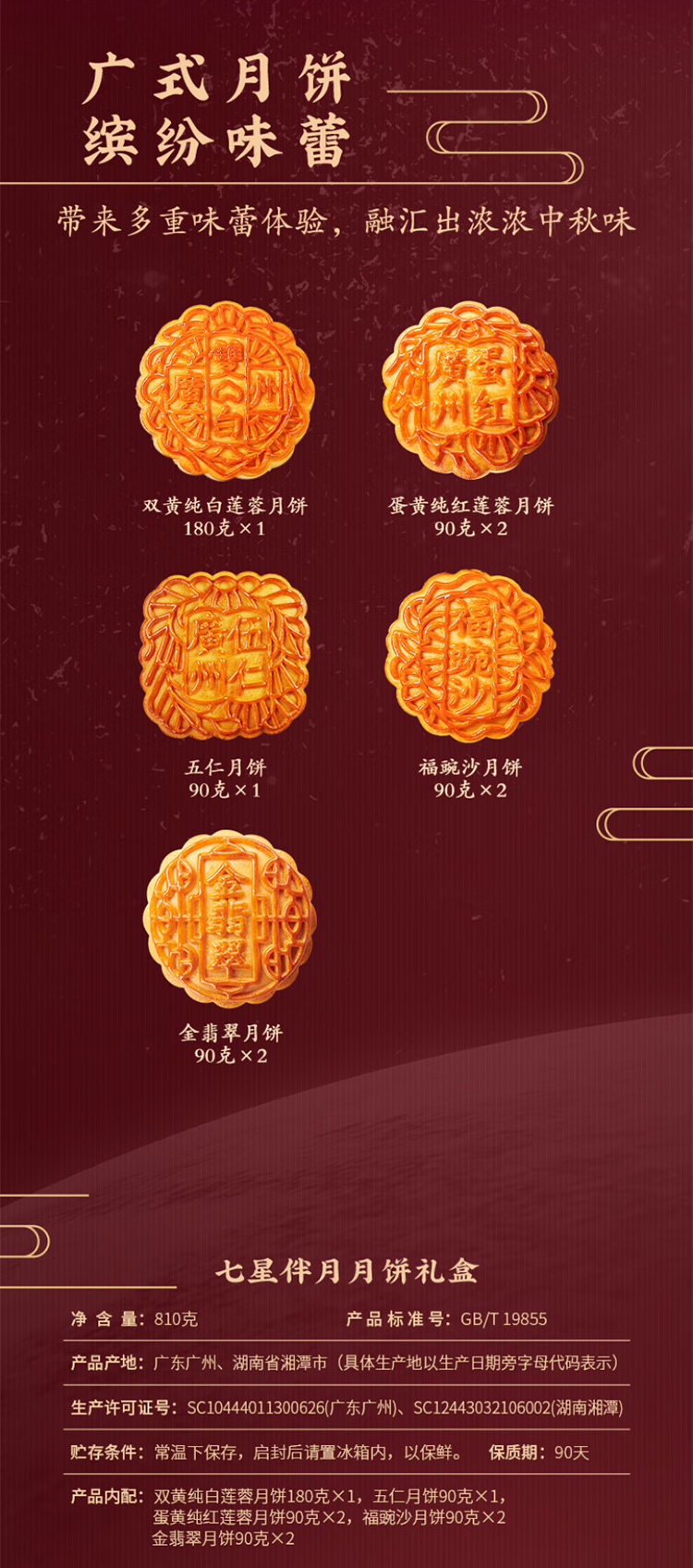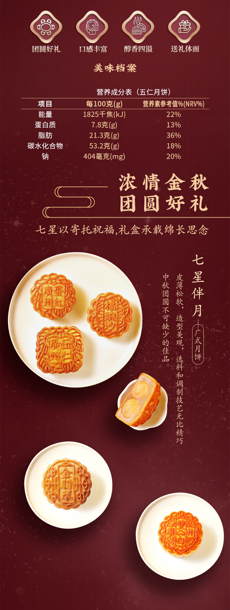 广州酒家为食喵广州酒家七星伴月月饼礼盒广式双黄纯白蛋黄老式五仁中秋送礼团购 七星伴月月饼礼盒 810g