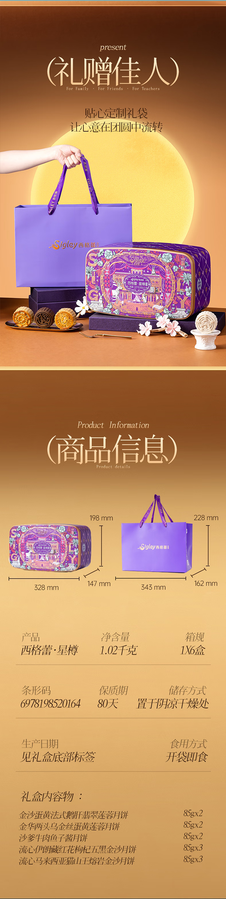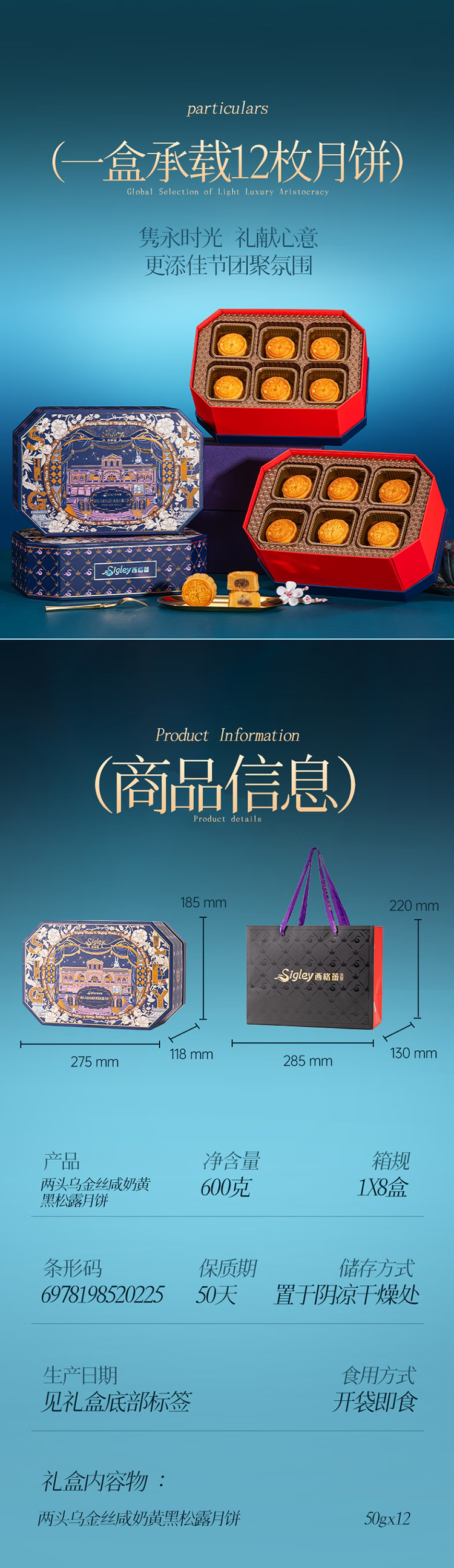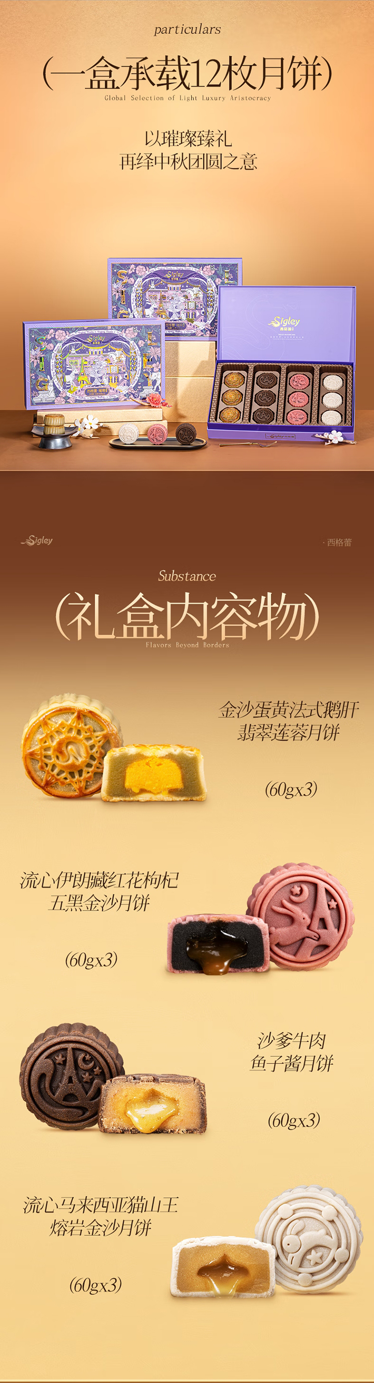 西格蕾金沙流心月饼礼盒 黑松露莲蓉 奶黄礼盒中秋 传统美食